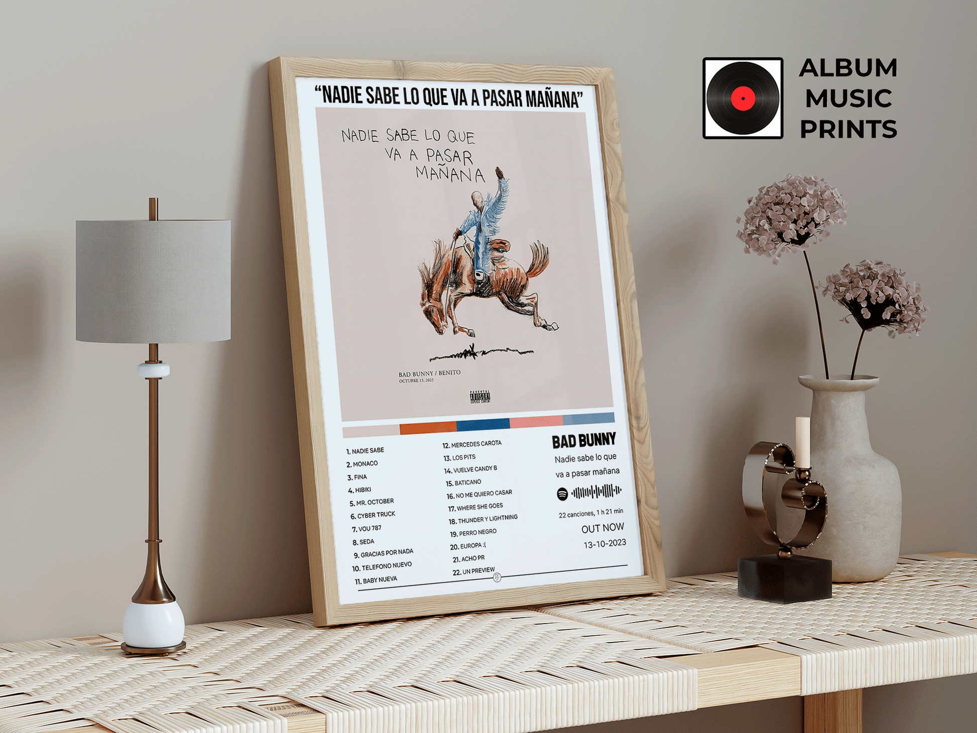 Descarga el arte icónico del álbum NADIE SABE LO QUE VA A PASAR MAÑANA de Bad Bunny y lleva la energía del conejo malo a tu espacio. Este póster digital de alta calidad captura la esencia de uno de los álbumes más esperados, perfecto para fanáticos del reggaetón, trap latino y coleccionistas de arte urbano.