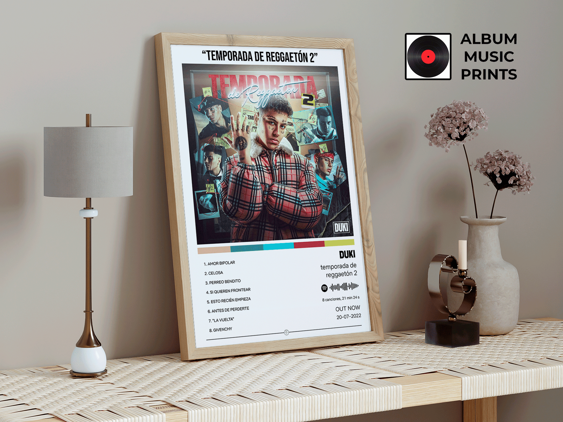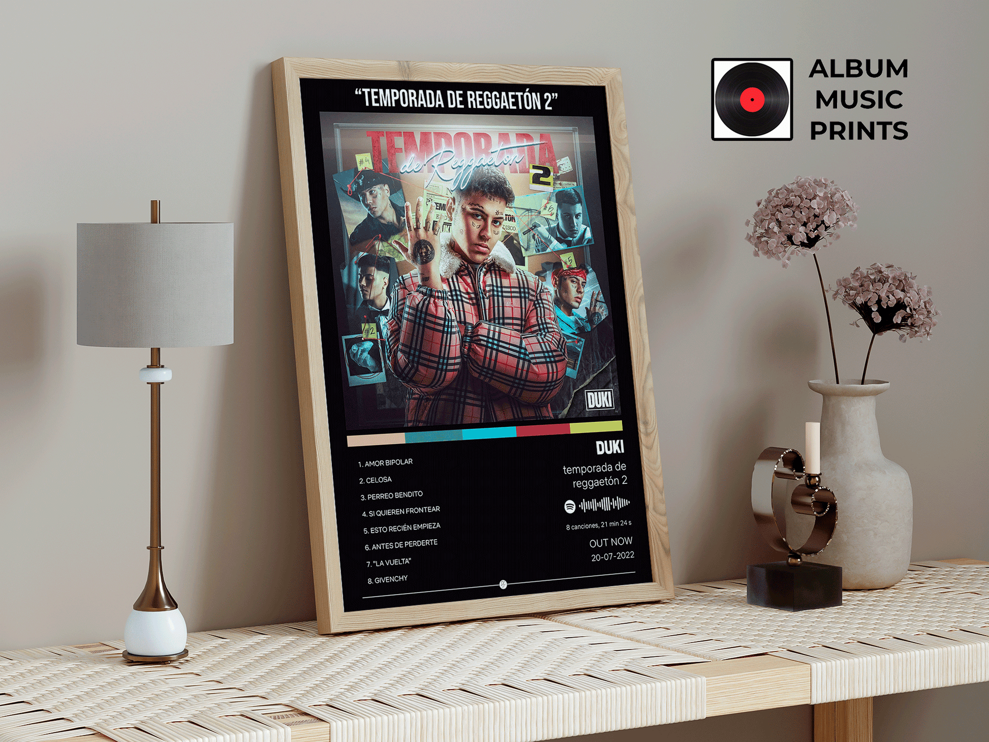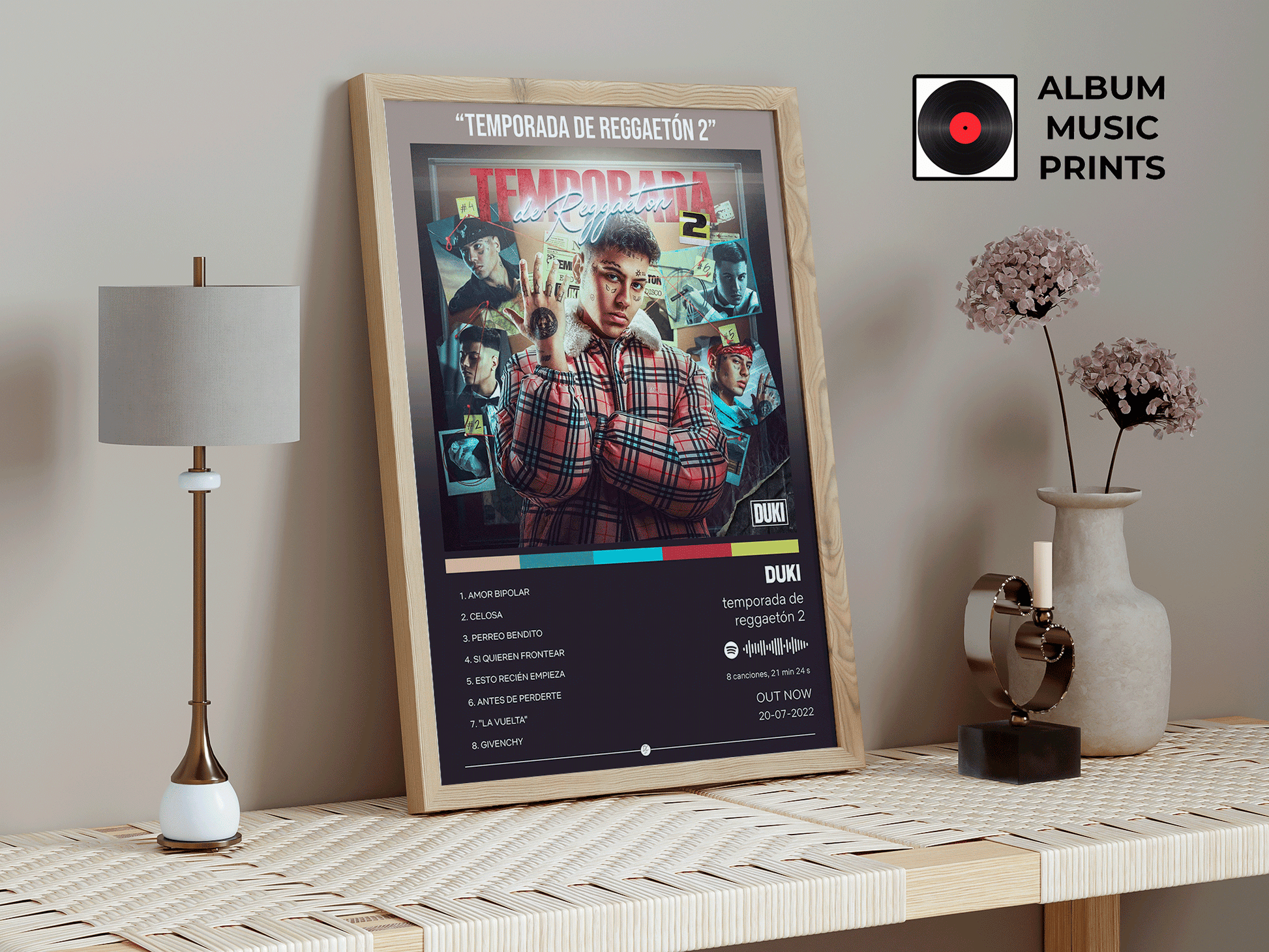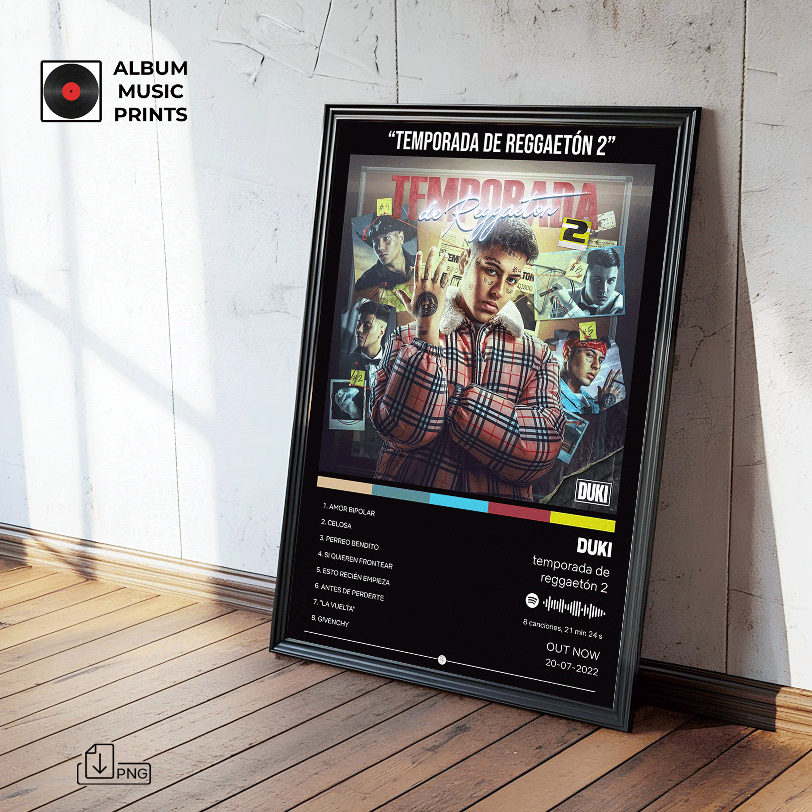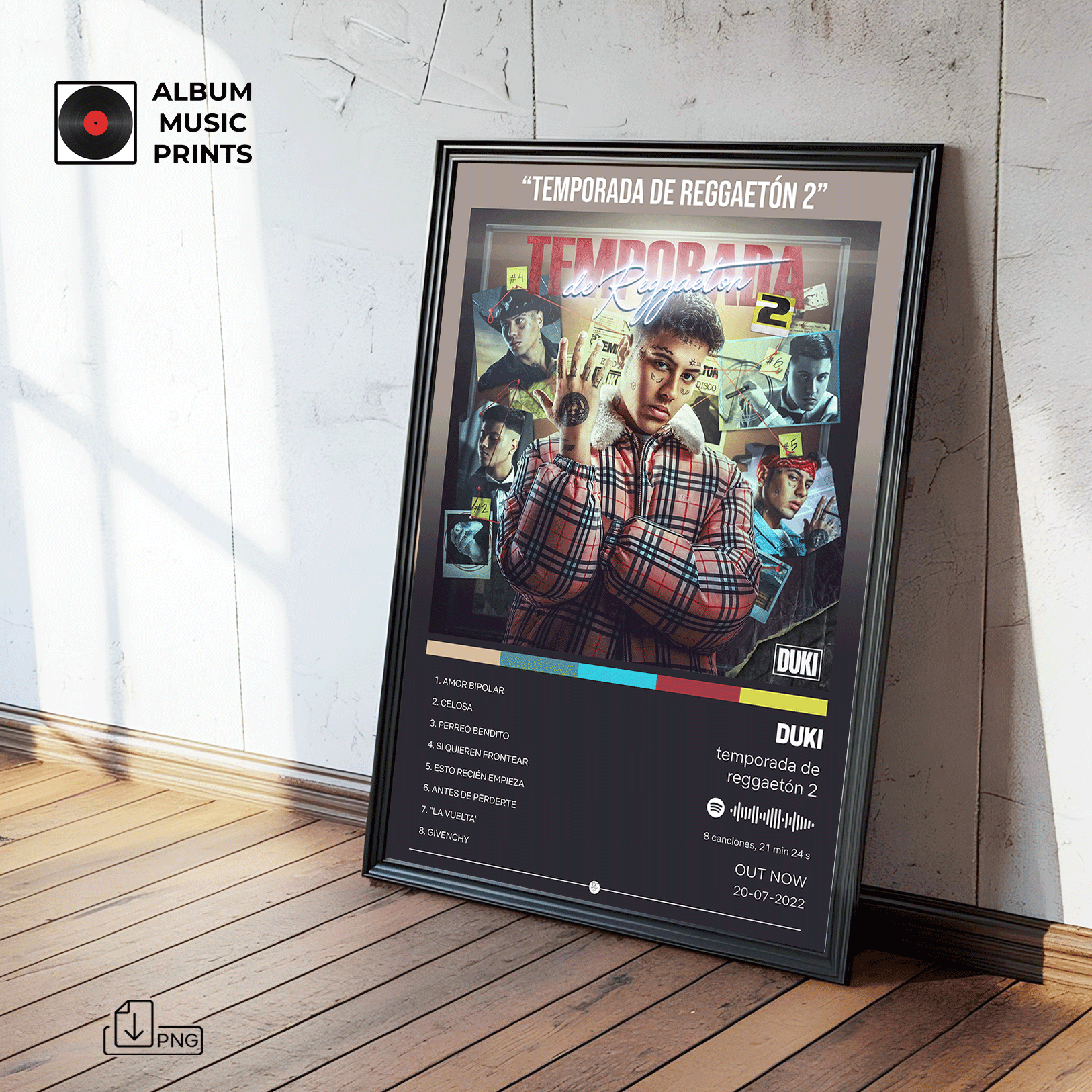 Descarga instantánea de póster digital de alta calidad del álbum Temporada de Reggaetón 2 de DUKI. La continuación del exitoso álbum, perfecto para decorar tu espacio con el arte de la música urbana latina.