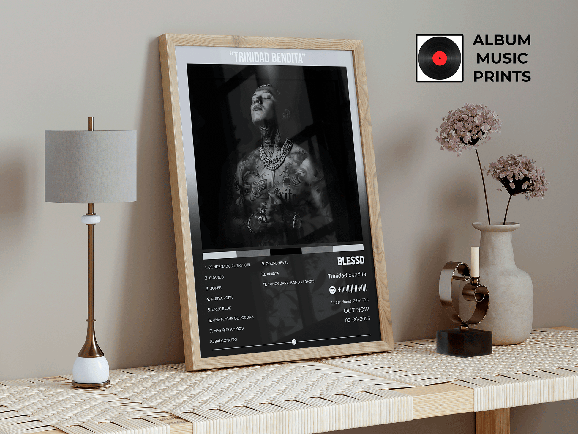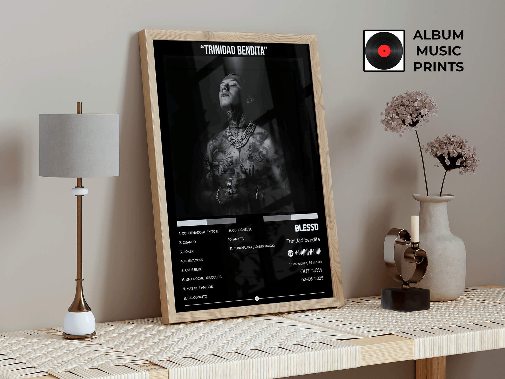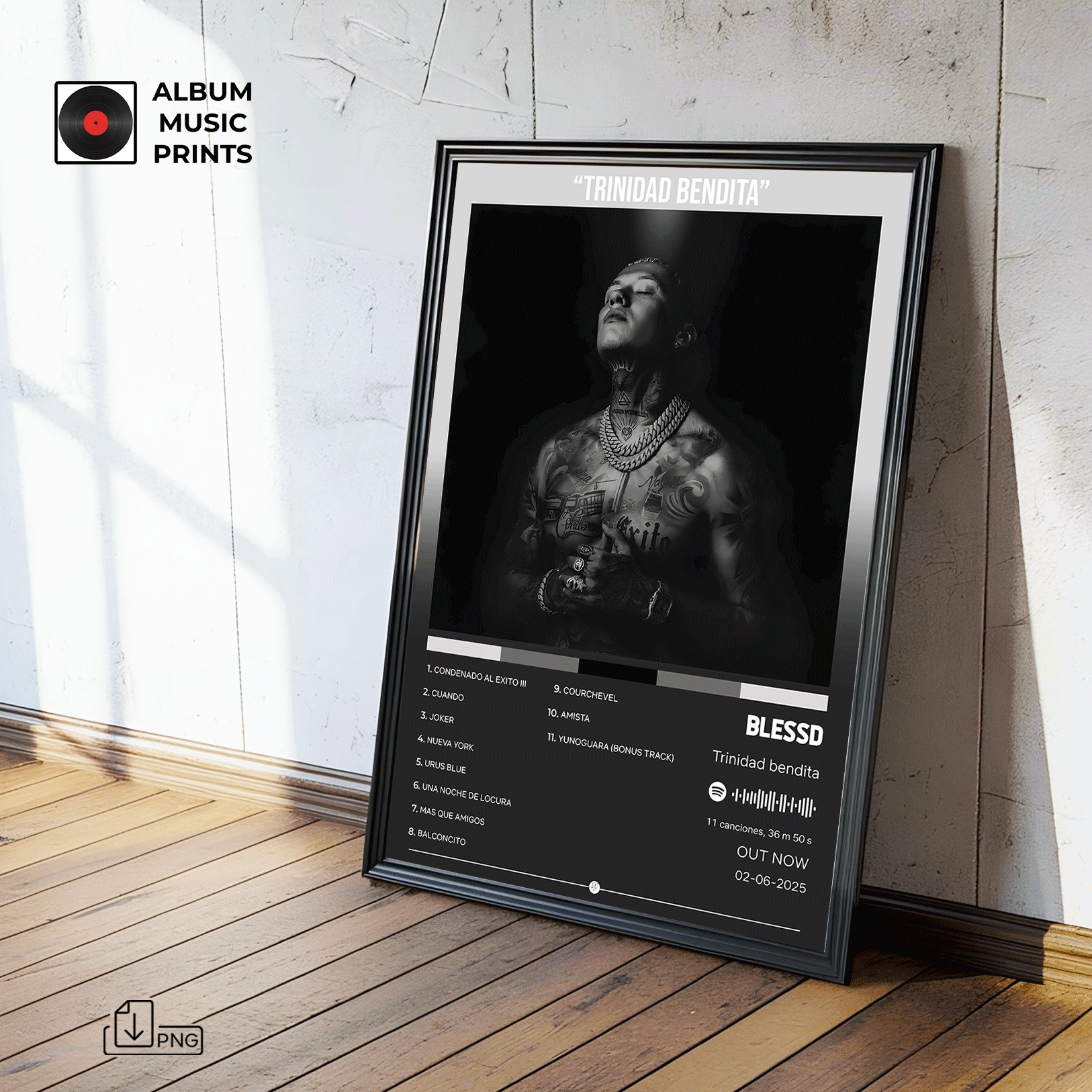 Transforma tu espacio con este exclusivo poster digital del álbum TRINIDAD BENDITA de Blessd. Perfecto para fanáticos del reggaetón urbano, coleccionistas de arte musical y amantes de la música latina contemporánea.
