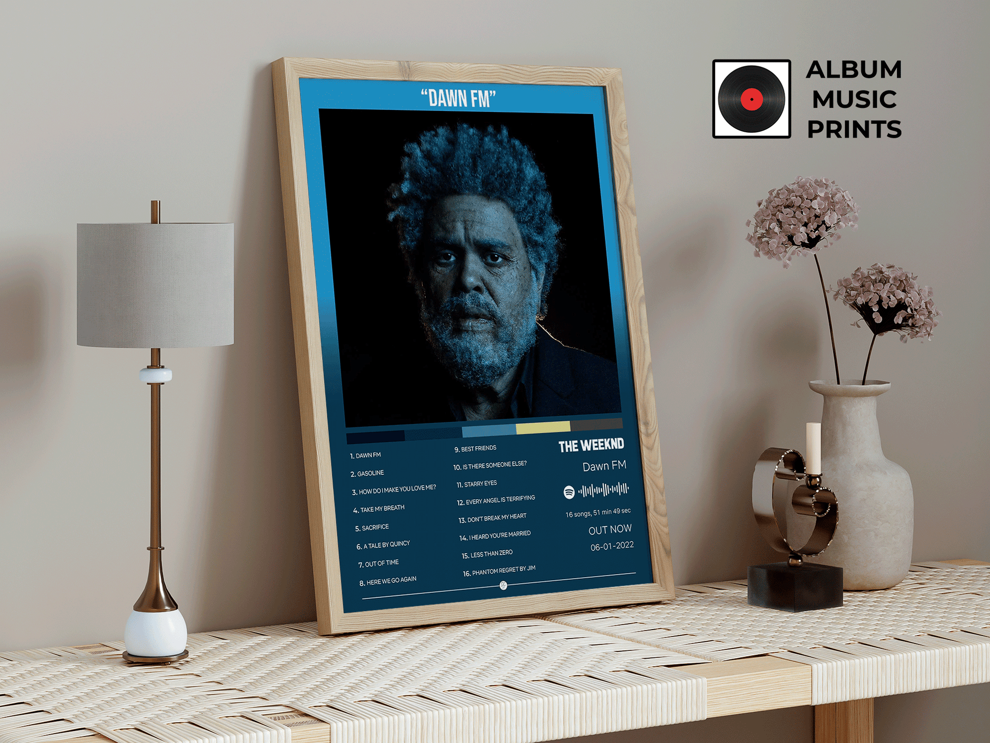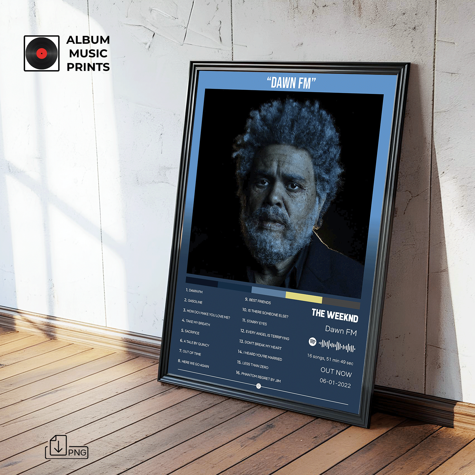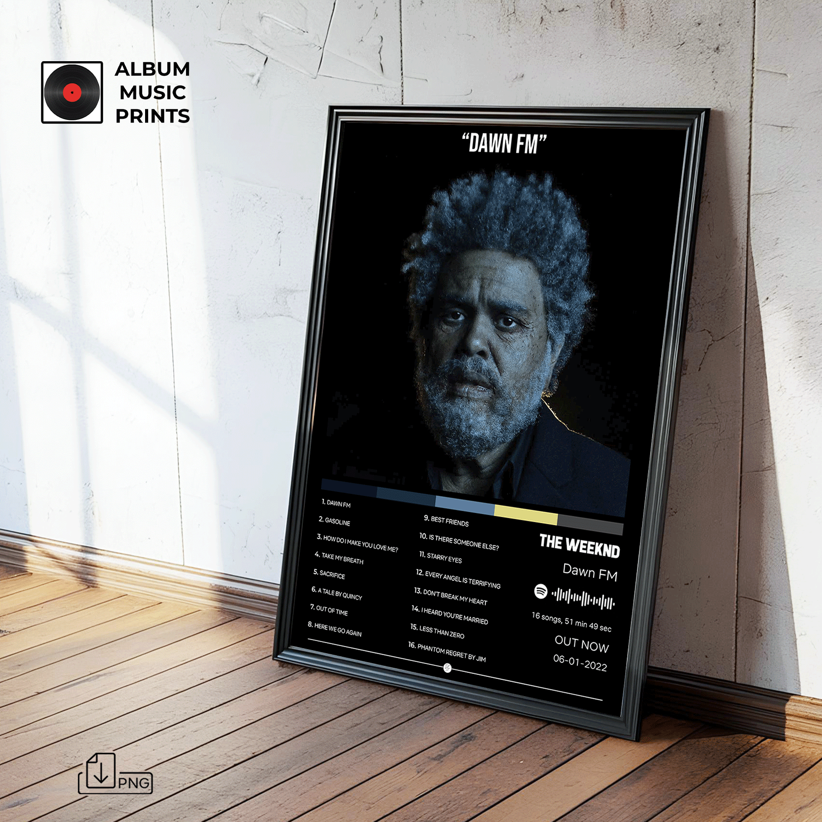 Palabras clave: póster The Weeknd, Dawn FM artwork, arte de álbum digital, póster musical descargable, decoración musical, arte urbano, póster imprimible, wall art música