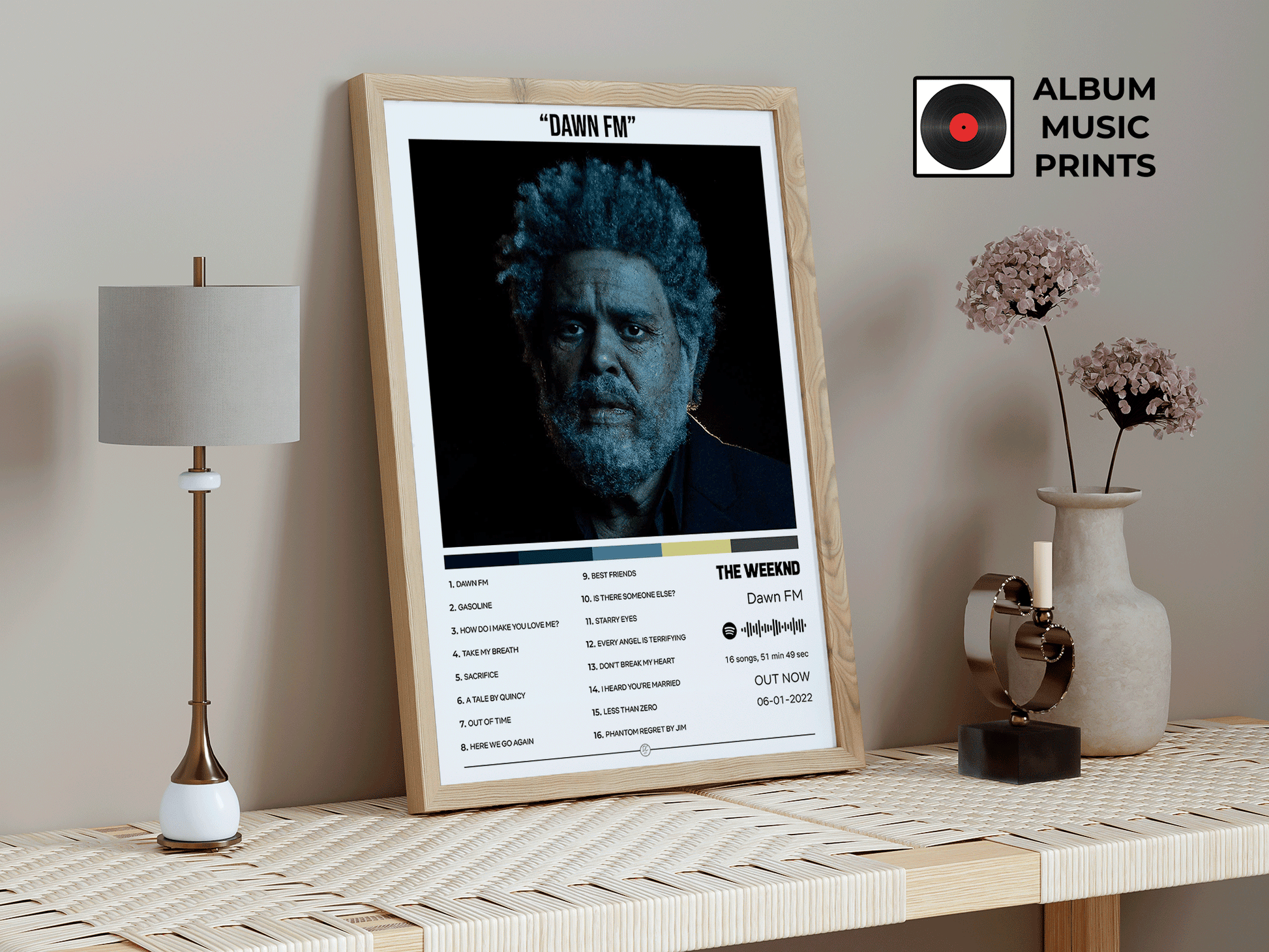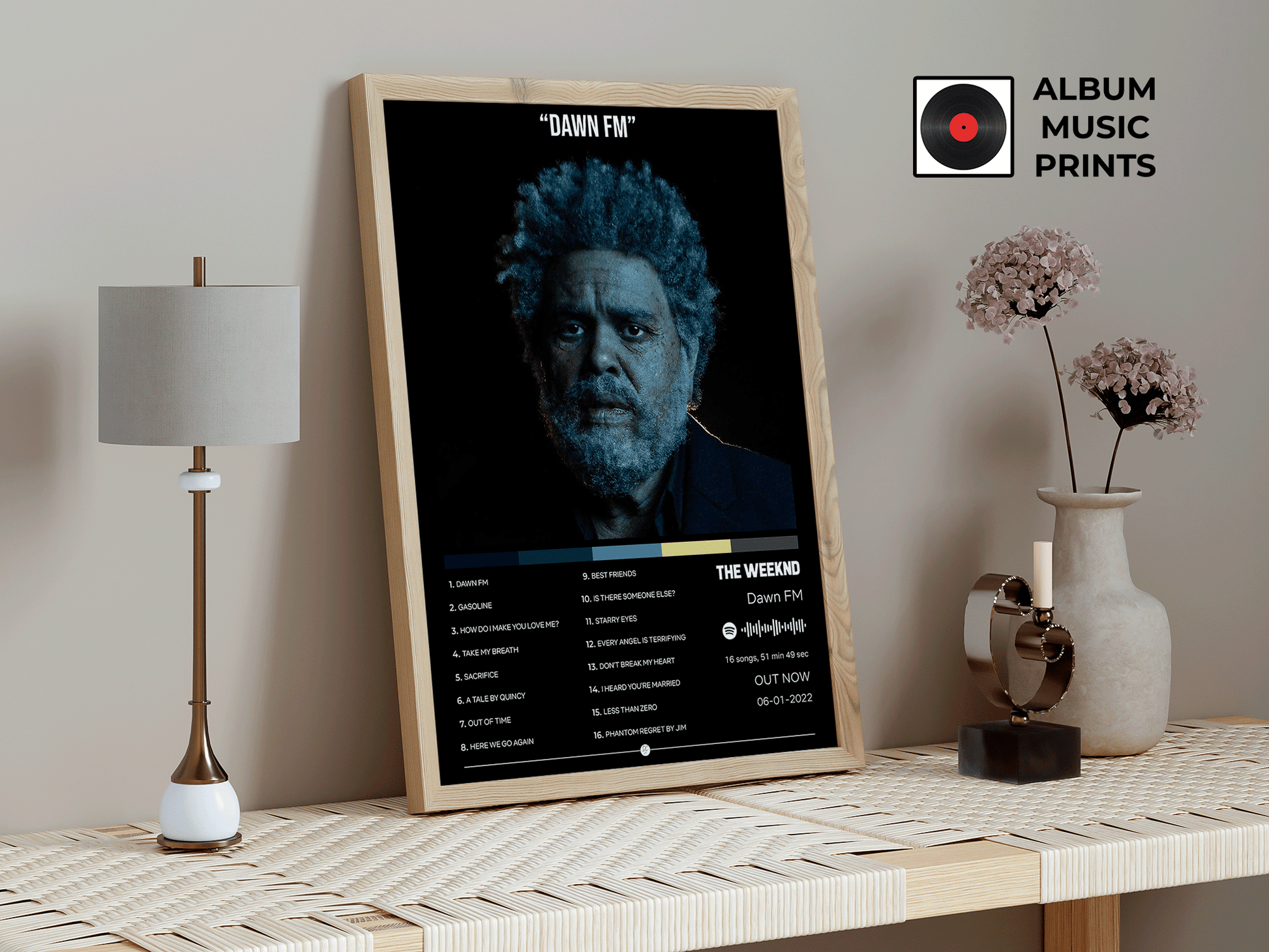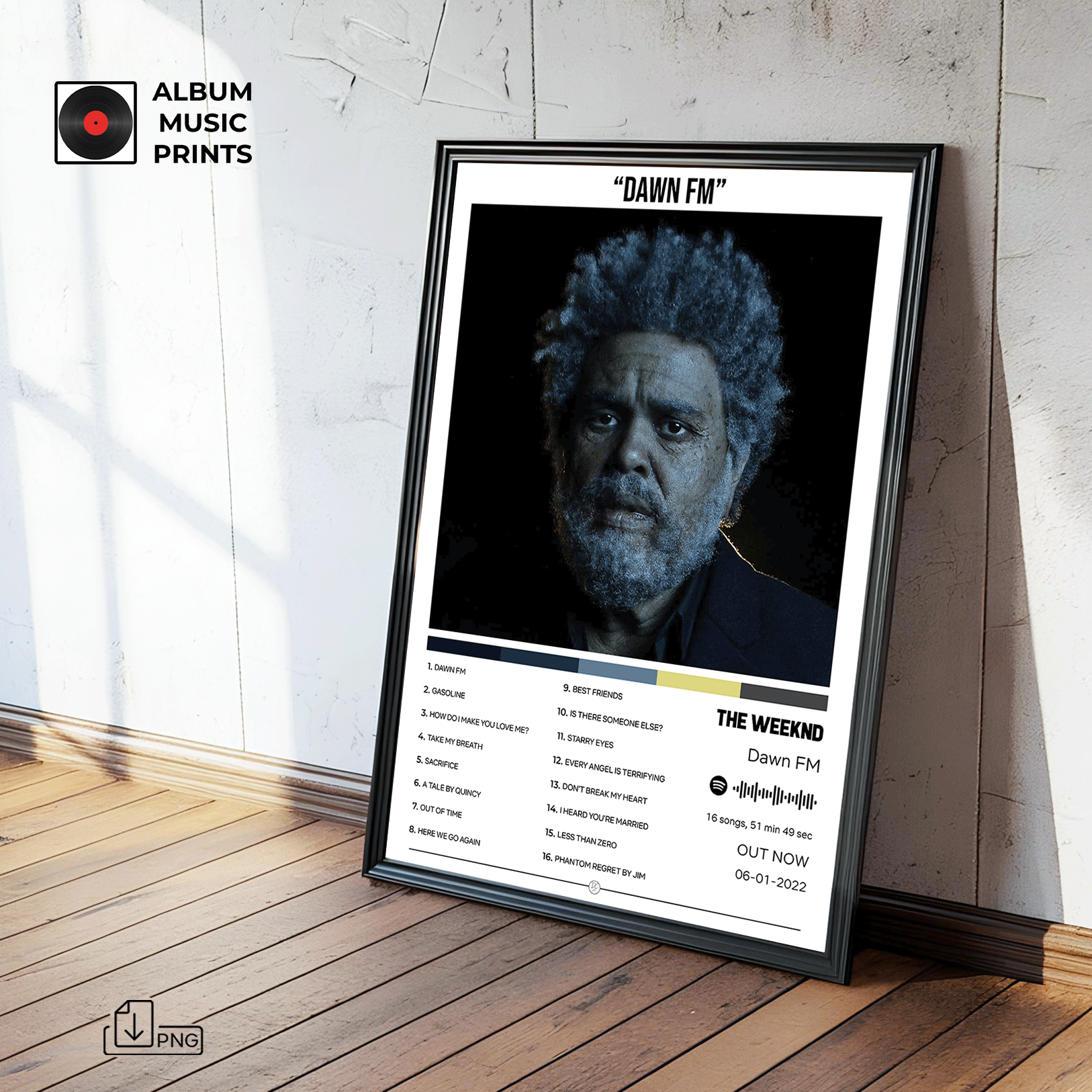 Palabras clave: póster The Weeknd, Dawn FM artwork, arte de álbum digital, póster musical descargable, decoración musical, arte urbano, póster imprimible, wall art música