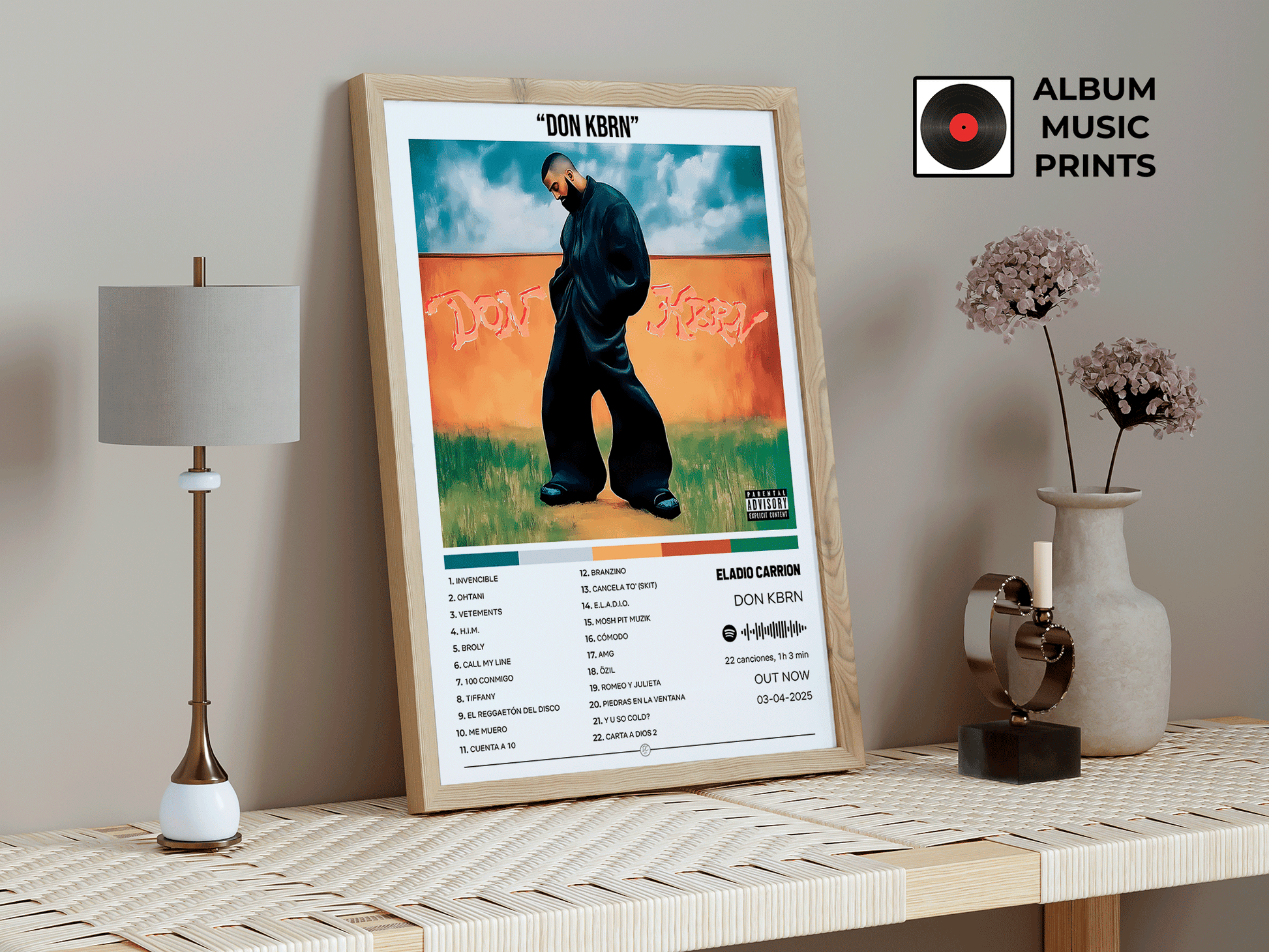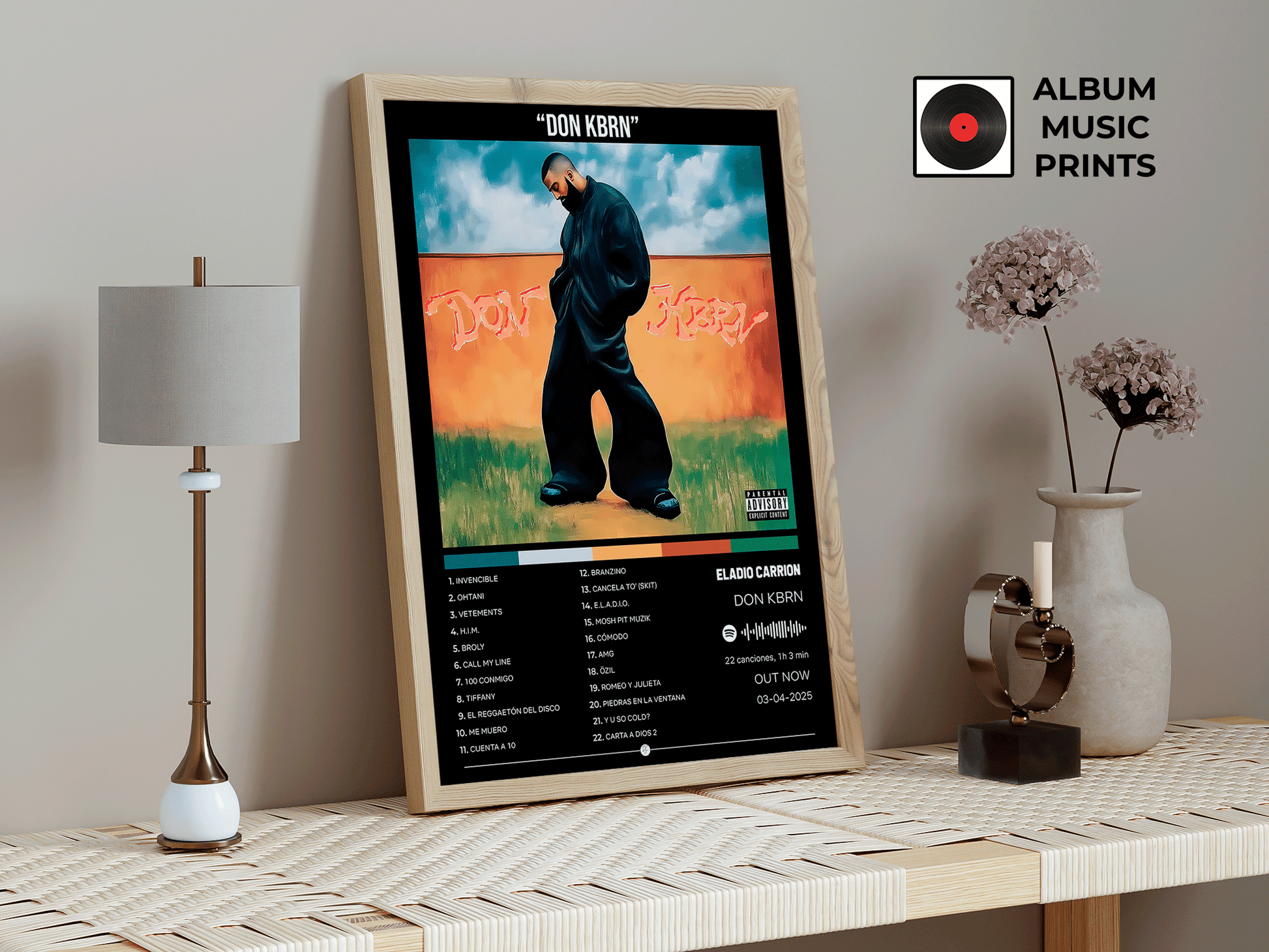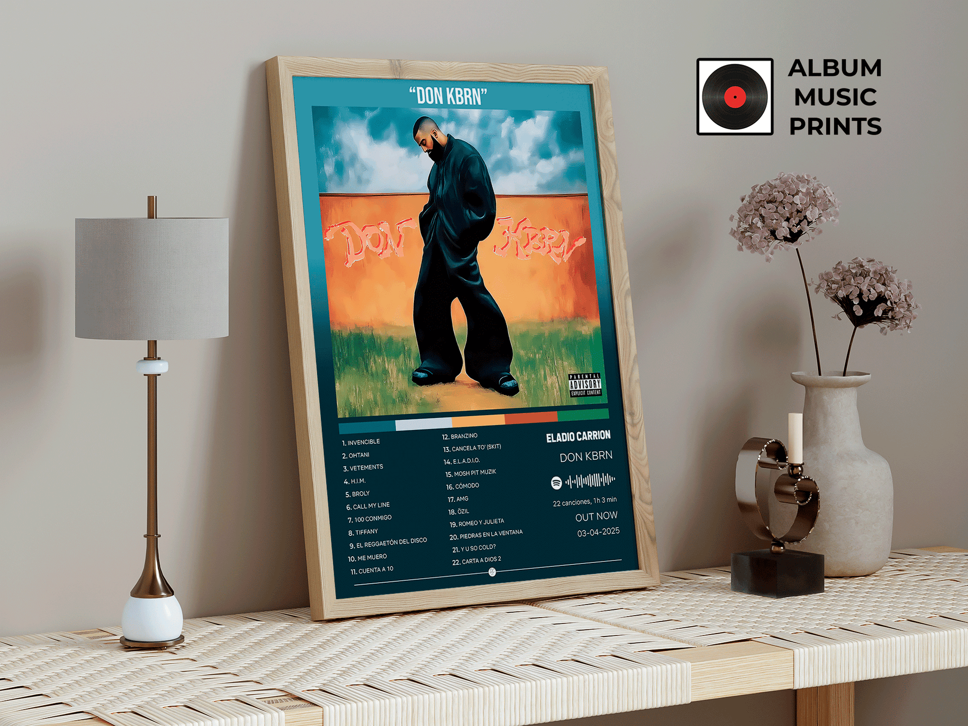 Descarga instantánea de arte digital de alta calidad del álbum DON KBRN de Eladio Carrión. Perfecto para fans, coleccionistas y decoradores que buscan capturar la esencia del trap latino y el estilo único de uno de los máximos exponentes de la música urbana contemporánea.