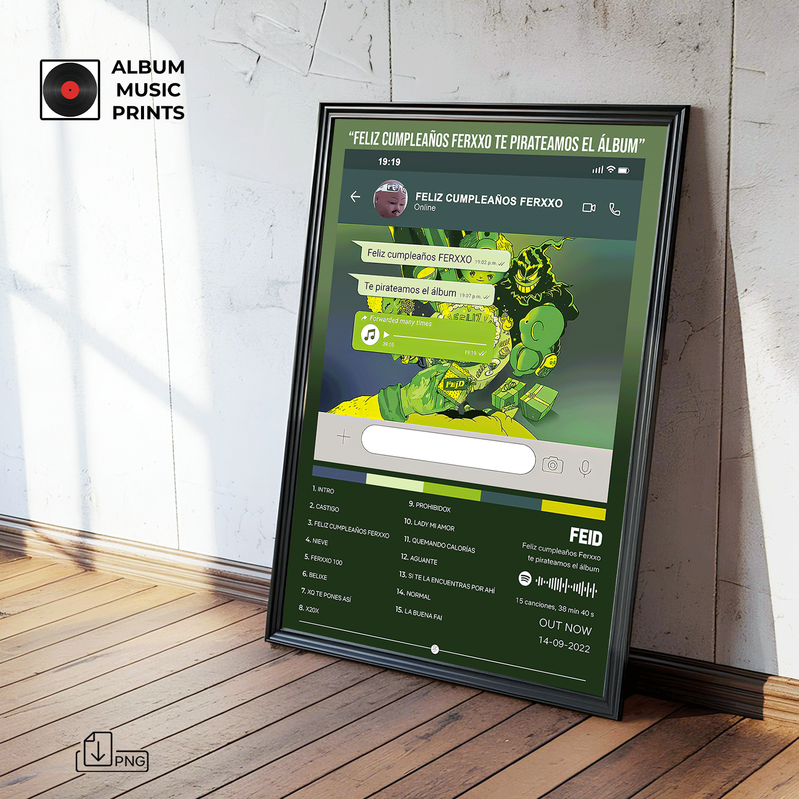 Transforma tu espacio con este impresionante póster digital del icónico álbum FELIZ CUMPLEAÑOS FERXXO TE PIRATEAMOS EL ÁLBUM de Feid. Perfecto para los amantes del reggaetón y la música urbana latina, este diseño editorial premium captura la esencia y el estilo único de uno de los proyectos más creativos y memorables de Ferxxo.