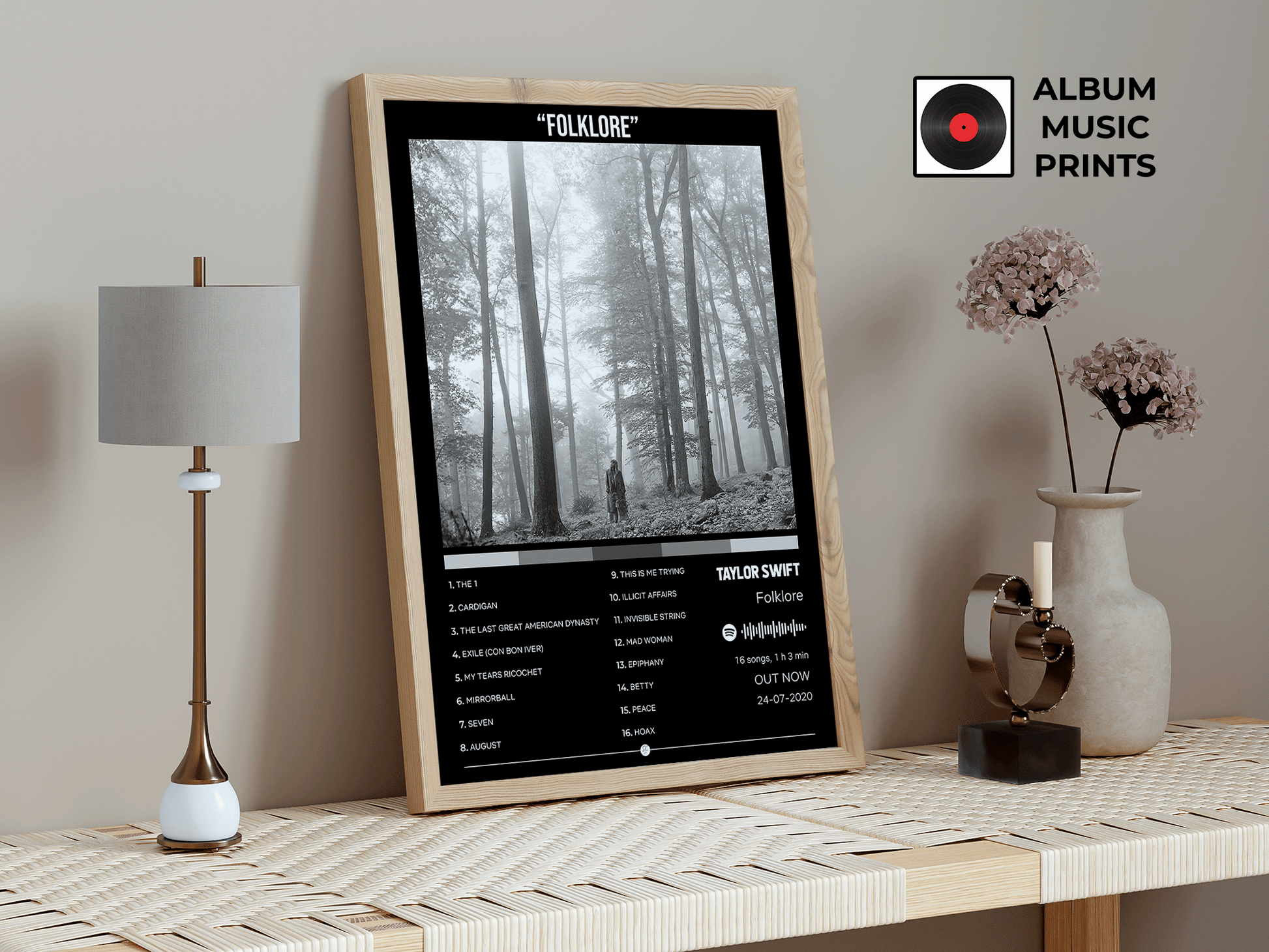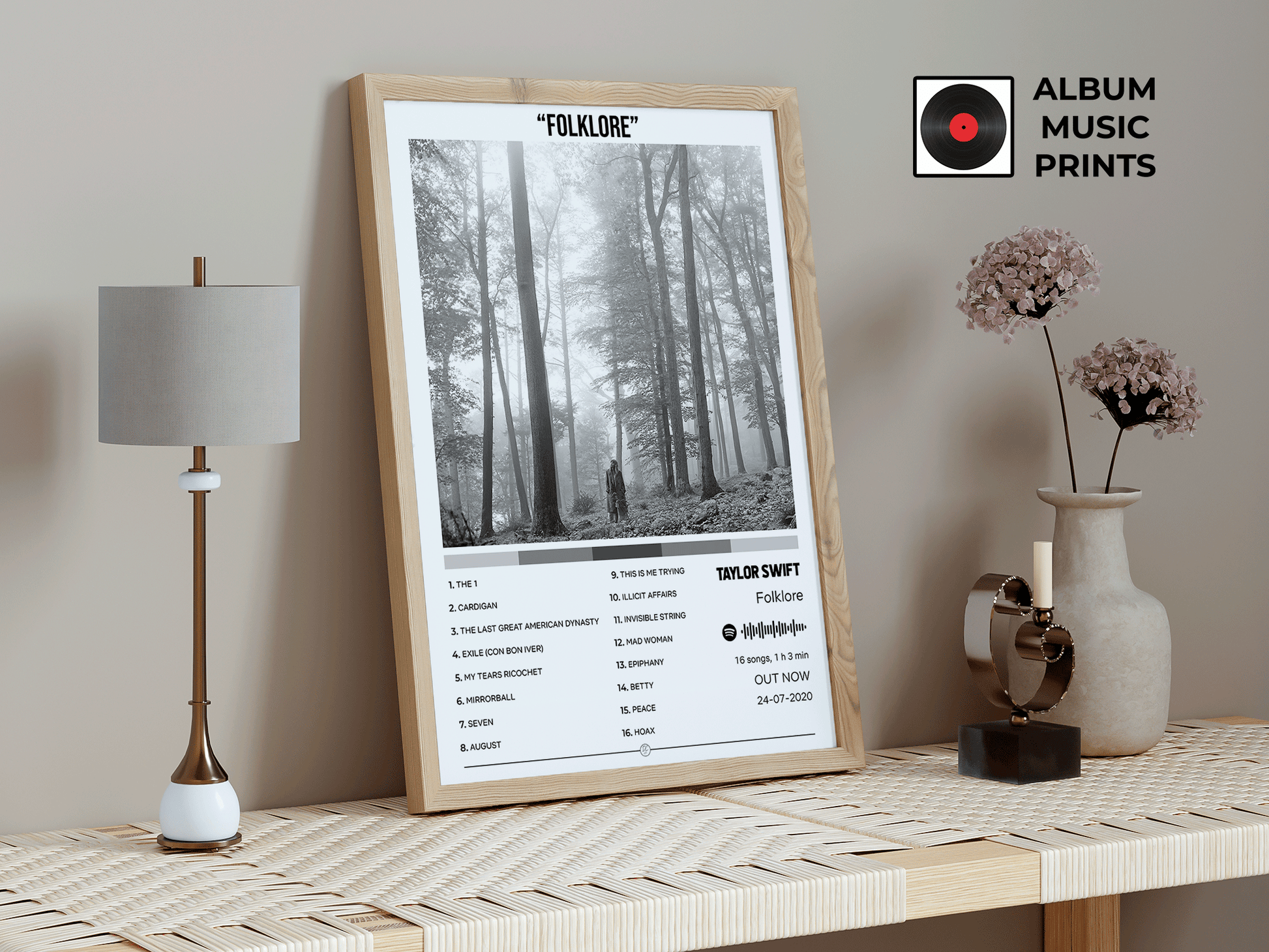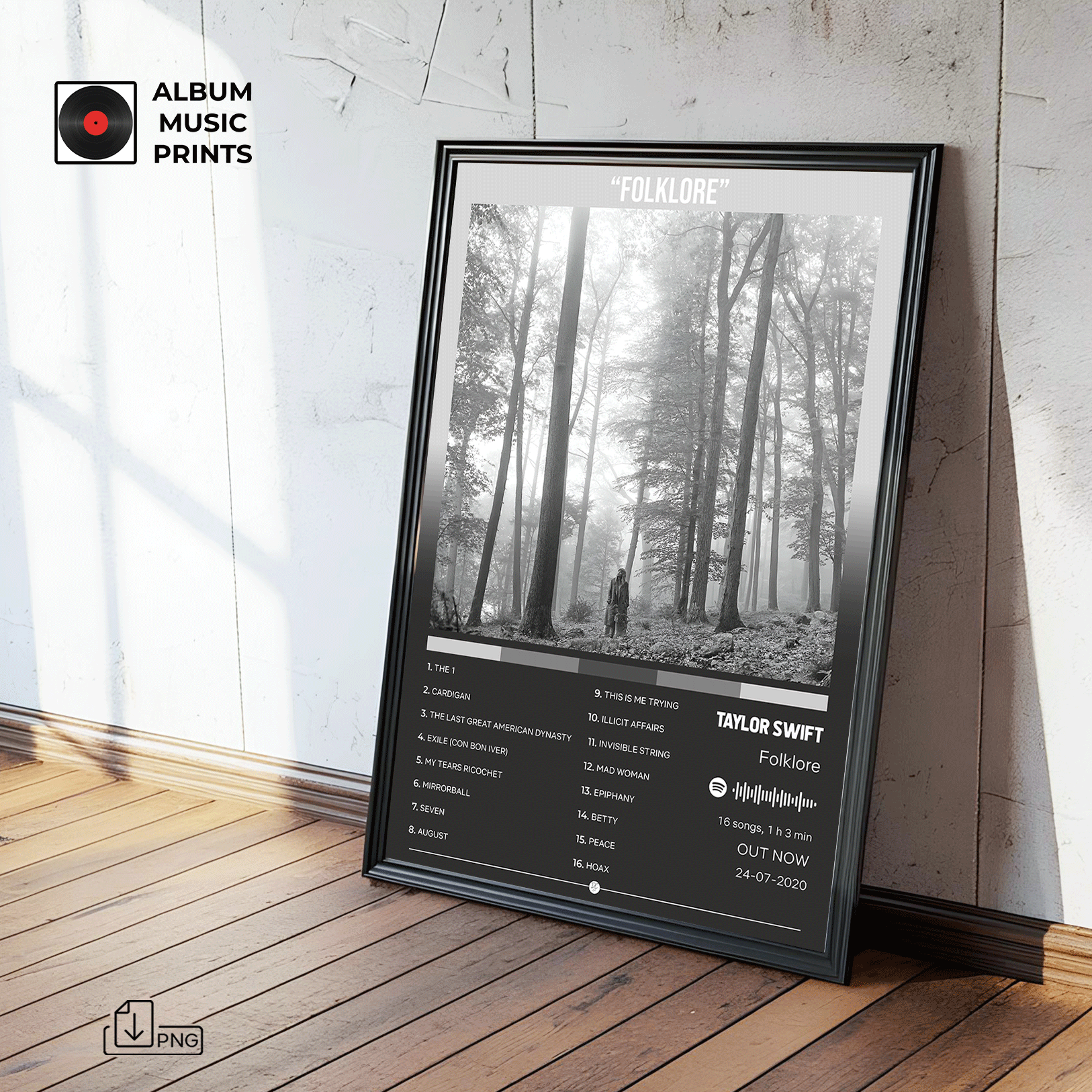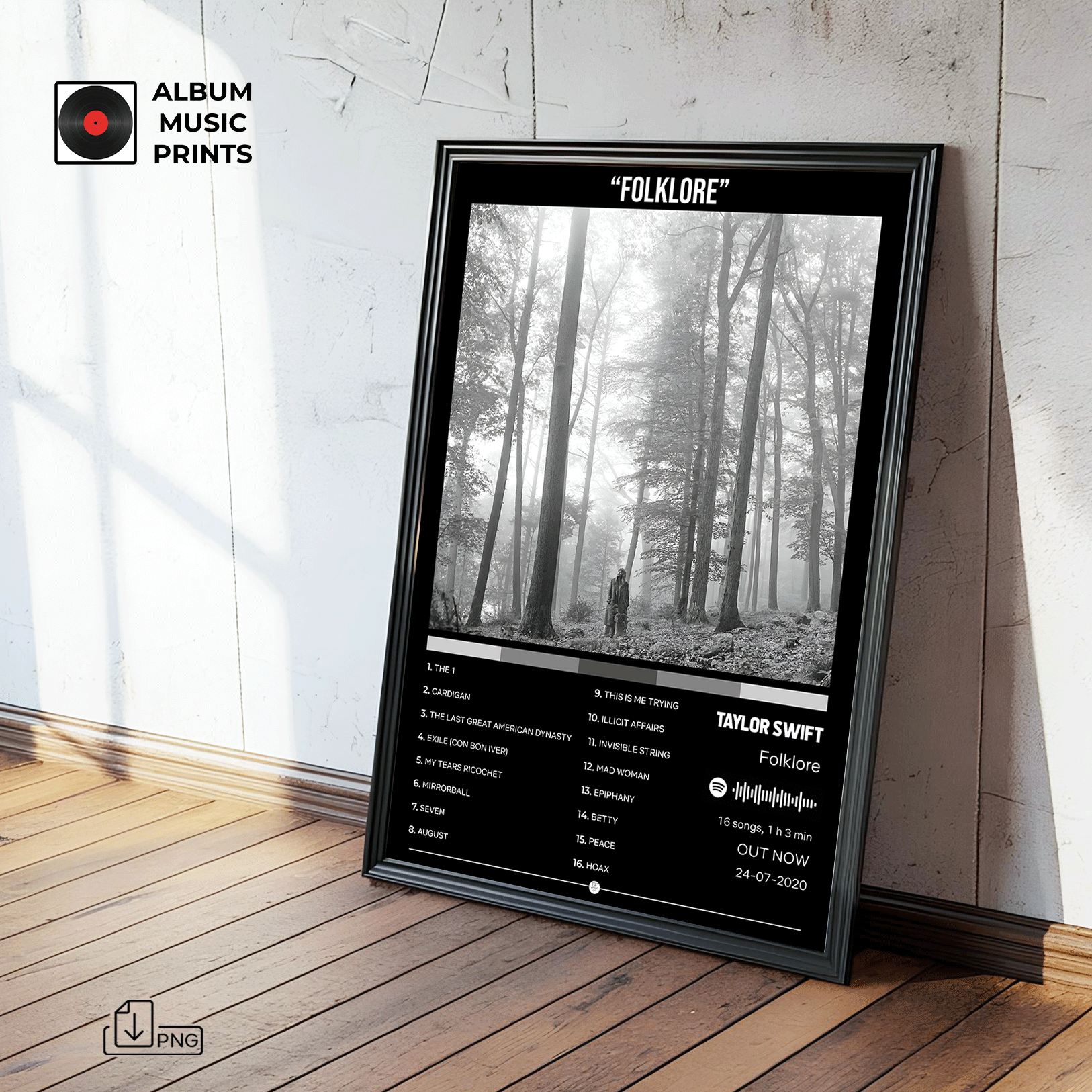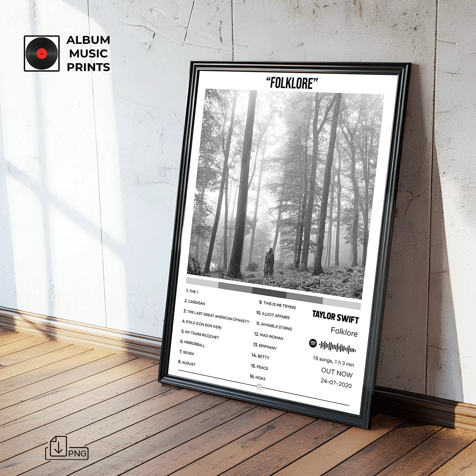 Descarga instantánea de póster digital de alta calidad del icónico álbum FOLKLORE de Taylor Swift. Perfecto para decorar tu espacio con arte musical moderno y elegante inspirado en uno de los álbumes más aclamados de la era moderna.