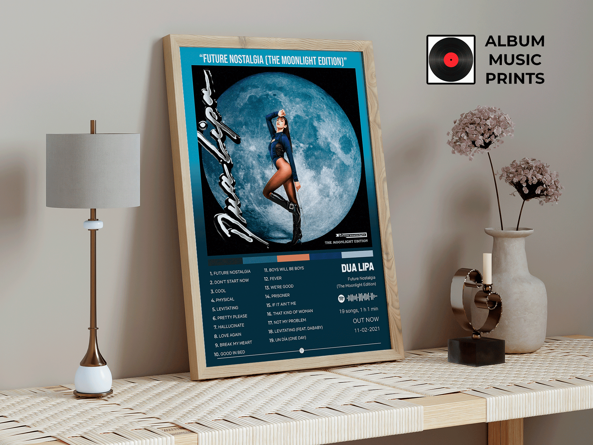 Descarga instantánea del poster del álbum Future Nostalgia (The Moonlight Edition) de Dua Lipa. Celebra la edición especial del álbum ganador del Grammy con este poster digital de alta calidad, perfecto para decorar tu espacio con el arte exclusivo de esta versión moonlight.