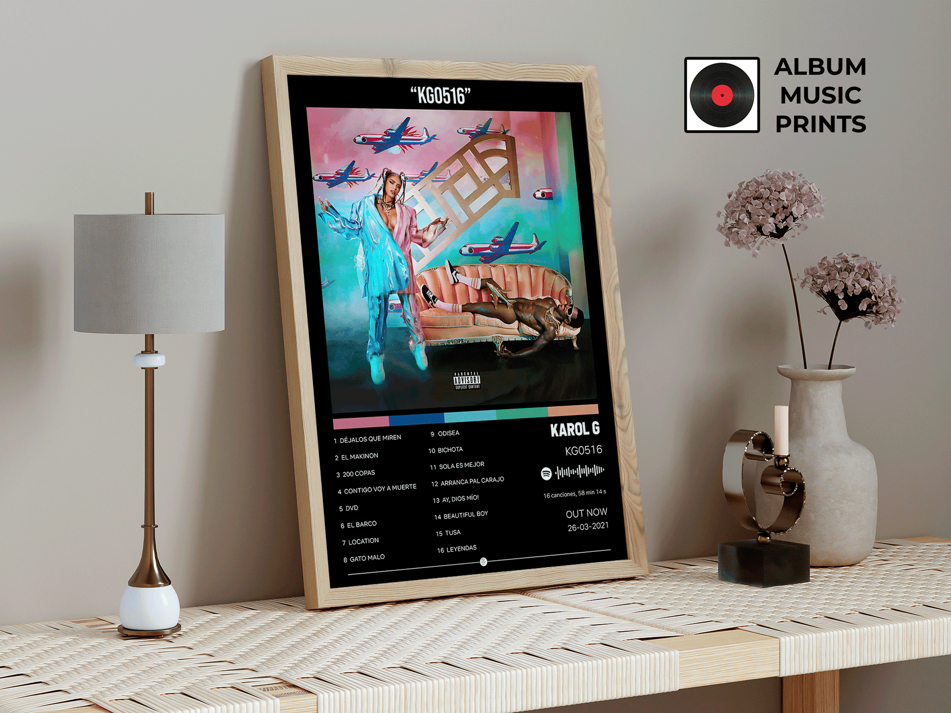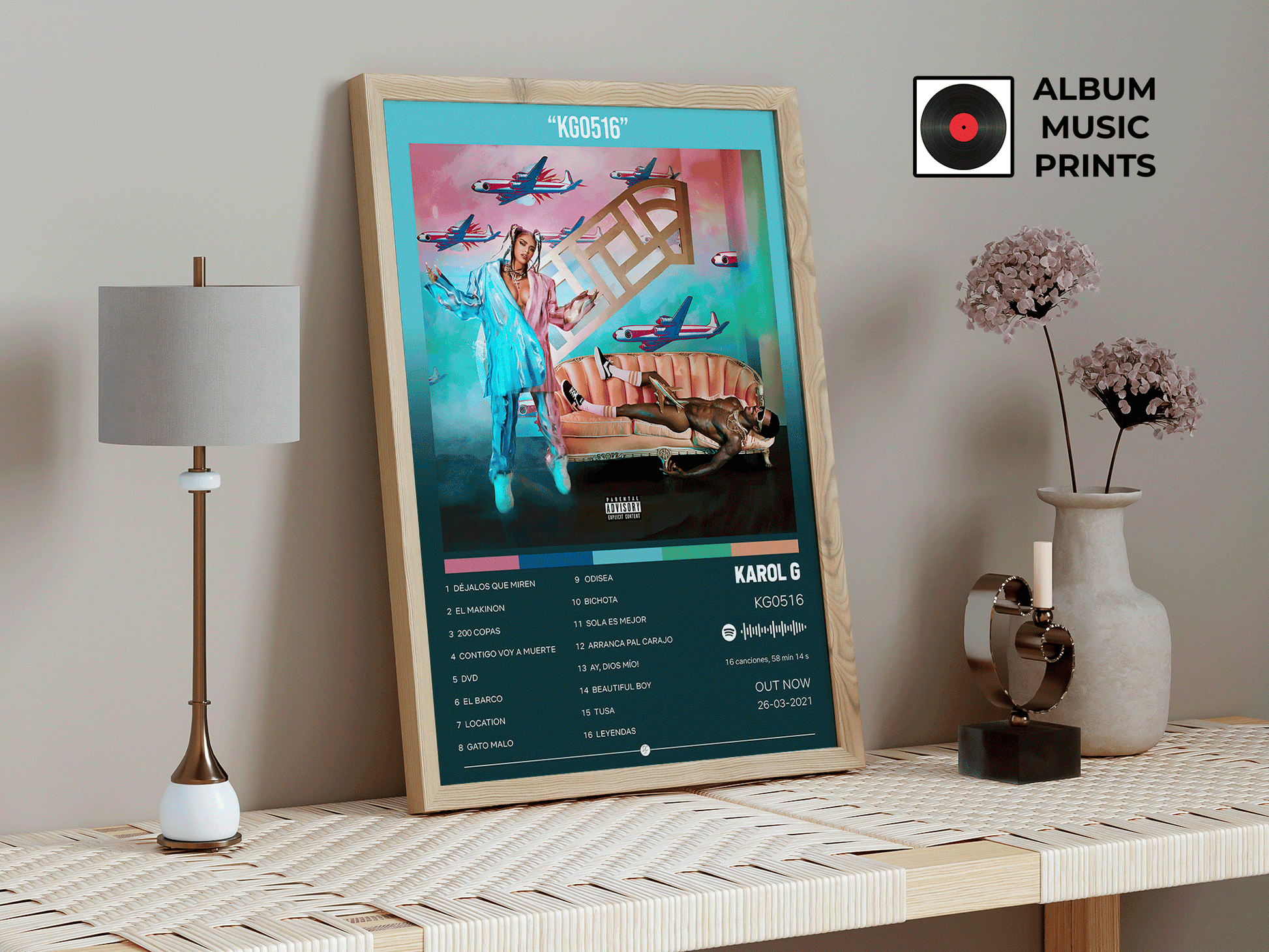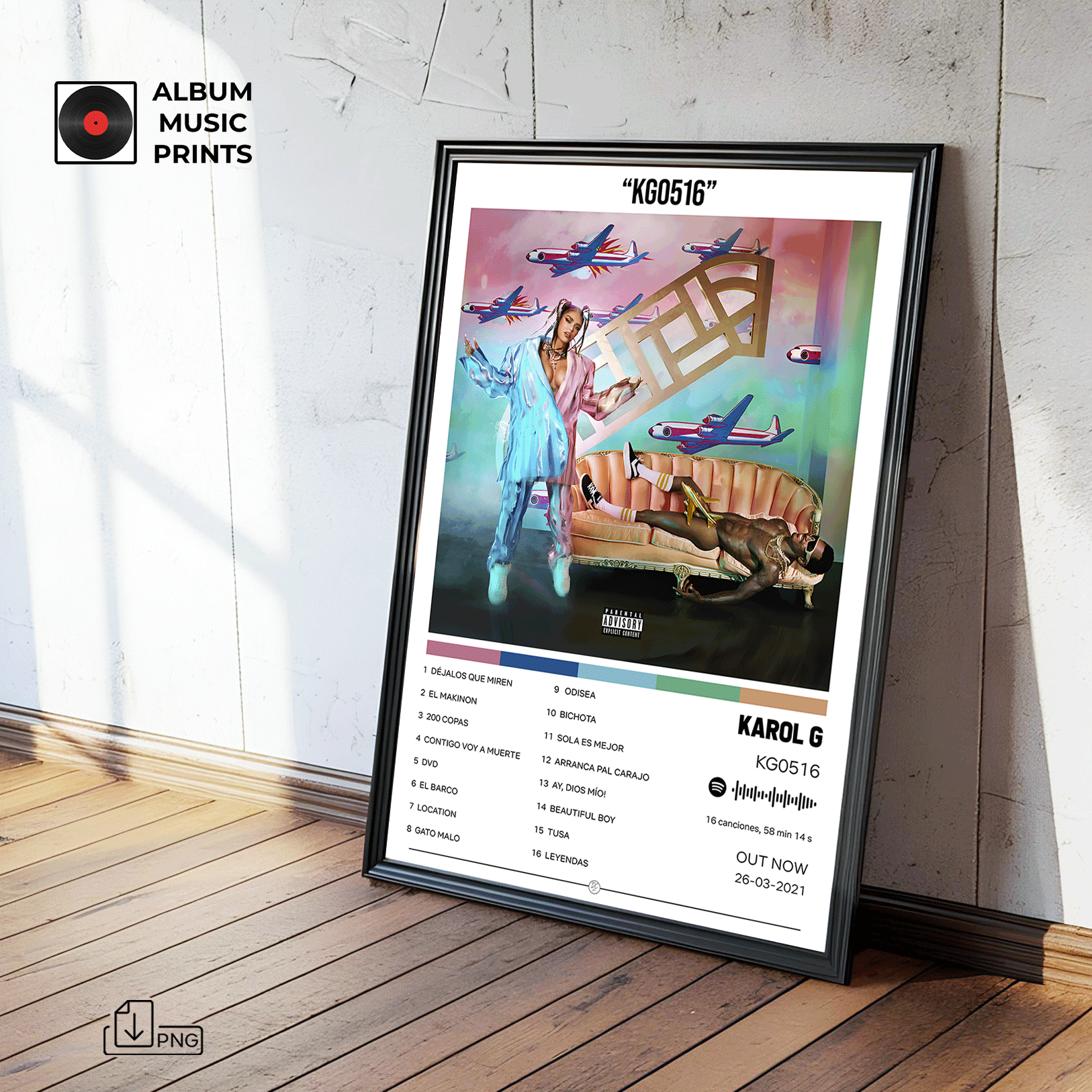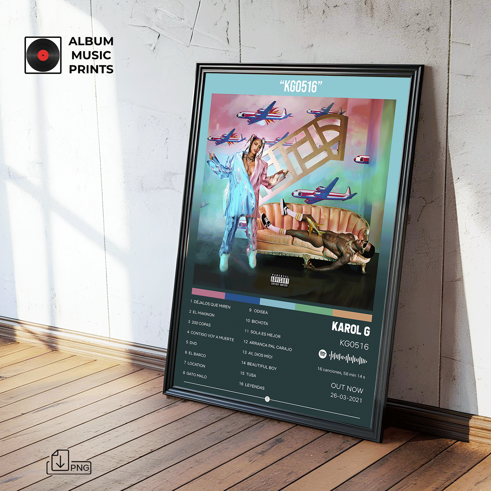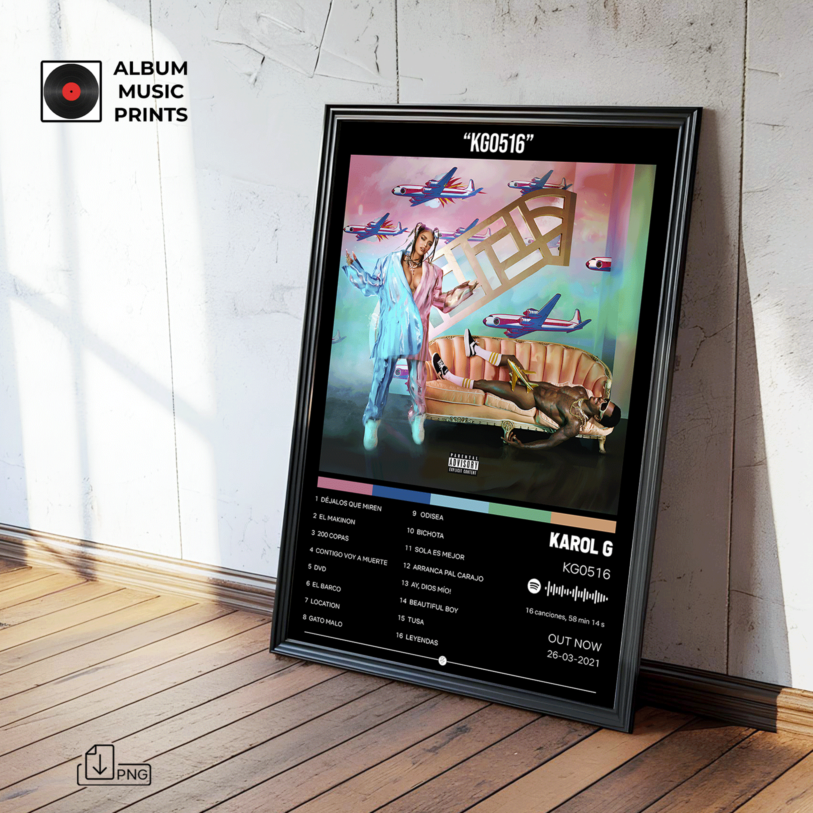 Descarga instantánea de póster digital de alta calidad del álbum KG0516 de KAROL G. Perfecto para decorar tu espacio con el arte de uno de los álbumes más icónicos del reggaetón y la música urbana latina.