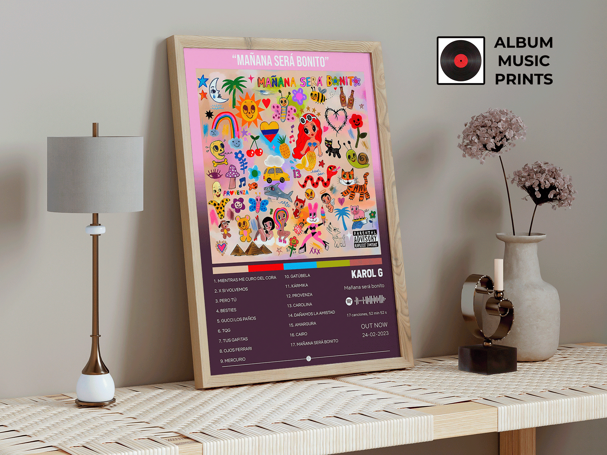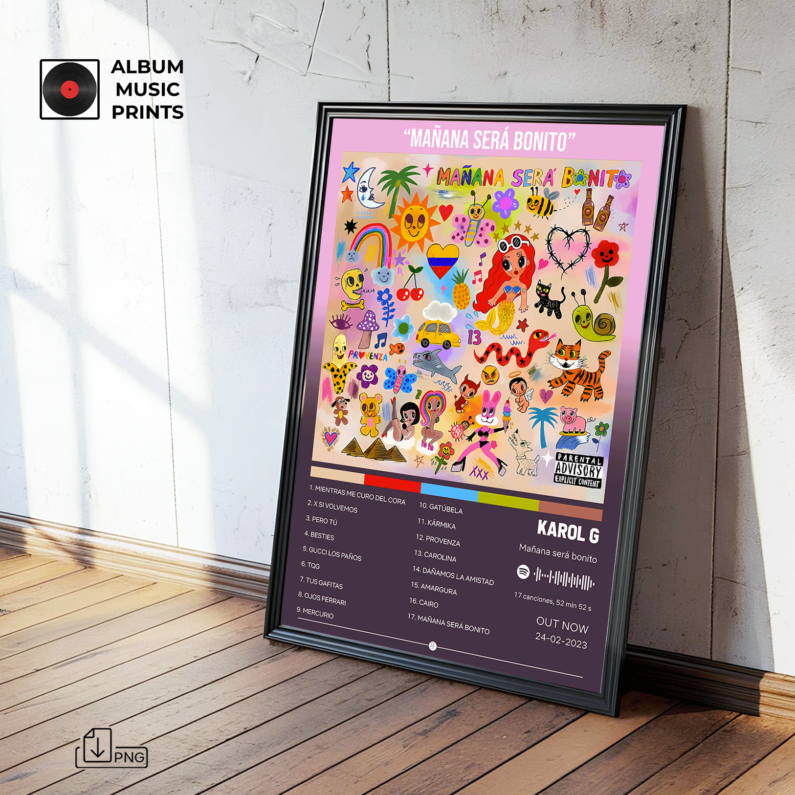 Descarga instantánea de póster digital de alta calidad del álbum MAÑANA SERÁ BONITO de KAROL G. Perfecto para decorar tu espacio con el arte de uno de los álbumes más exitosos y emblemáticos del reggaetón y la música urbana latina.