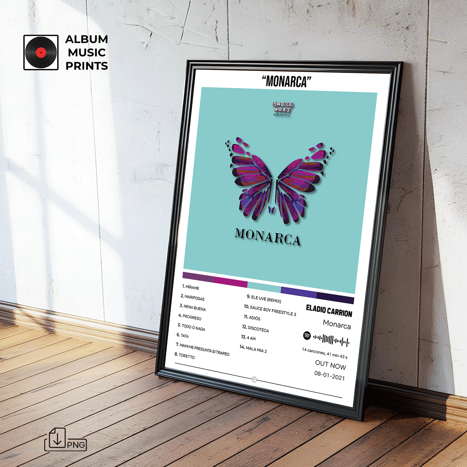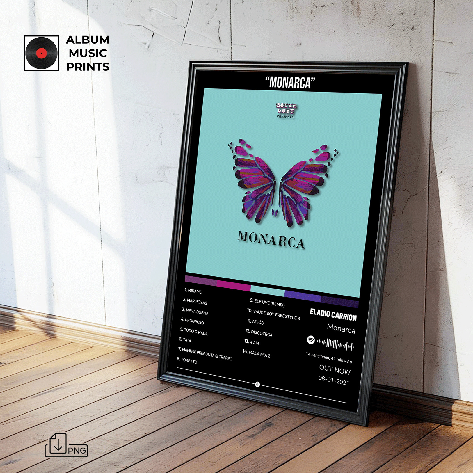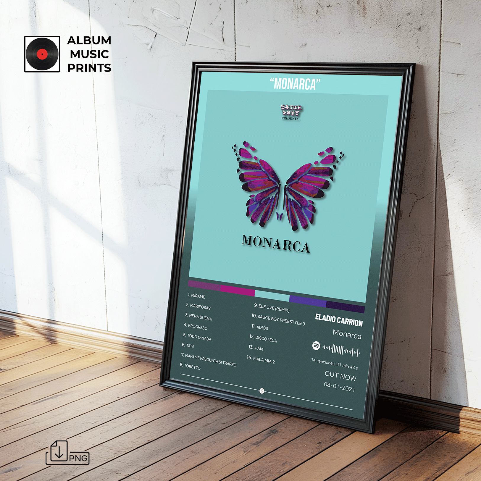 Descarga instantánea de arte digital de alta calidad del aclamado álbum MONARCA de Eladio Carrión. Perfecto para fans, coleccionistas y decoradores que buscan capturar la esencia del trap latino y el estilo único del artista que se coronó como uno de los máximos exponentes de la música urbana.