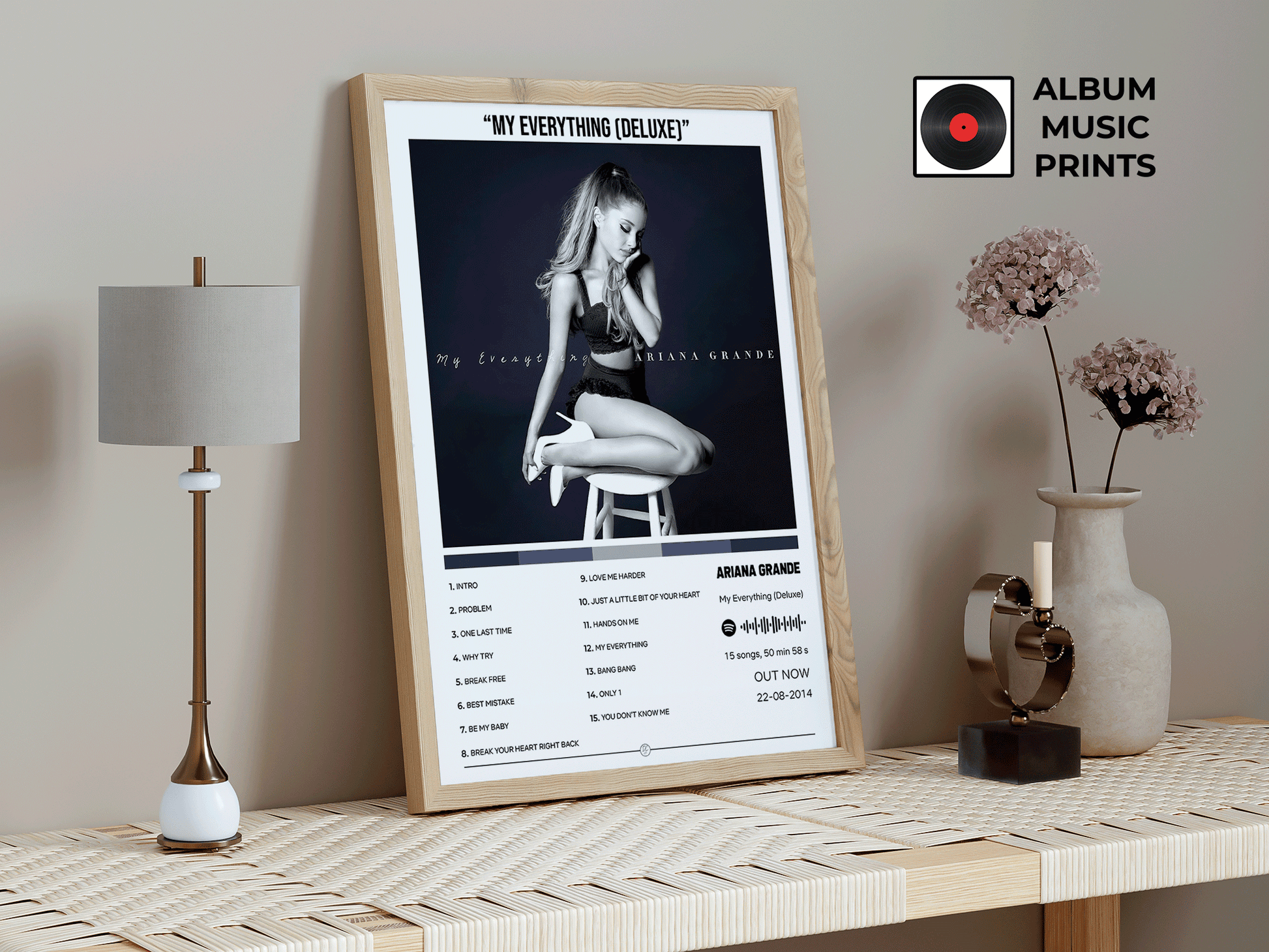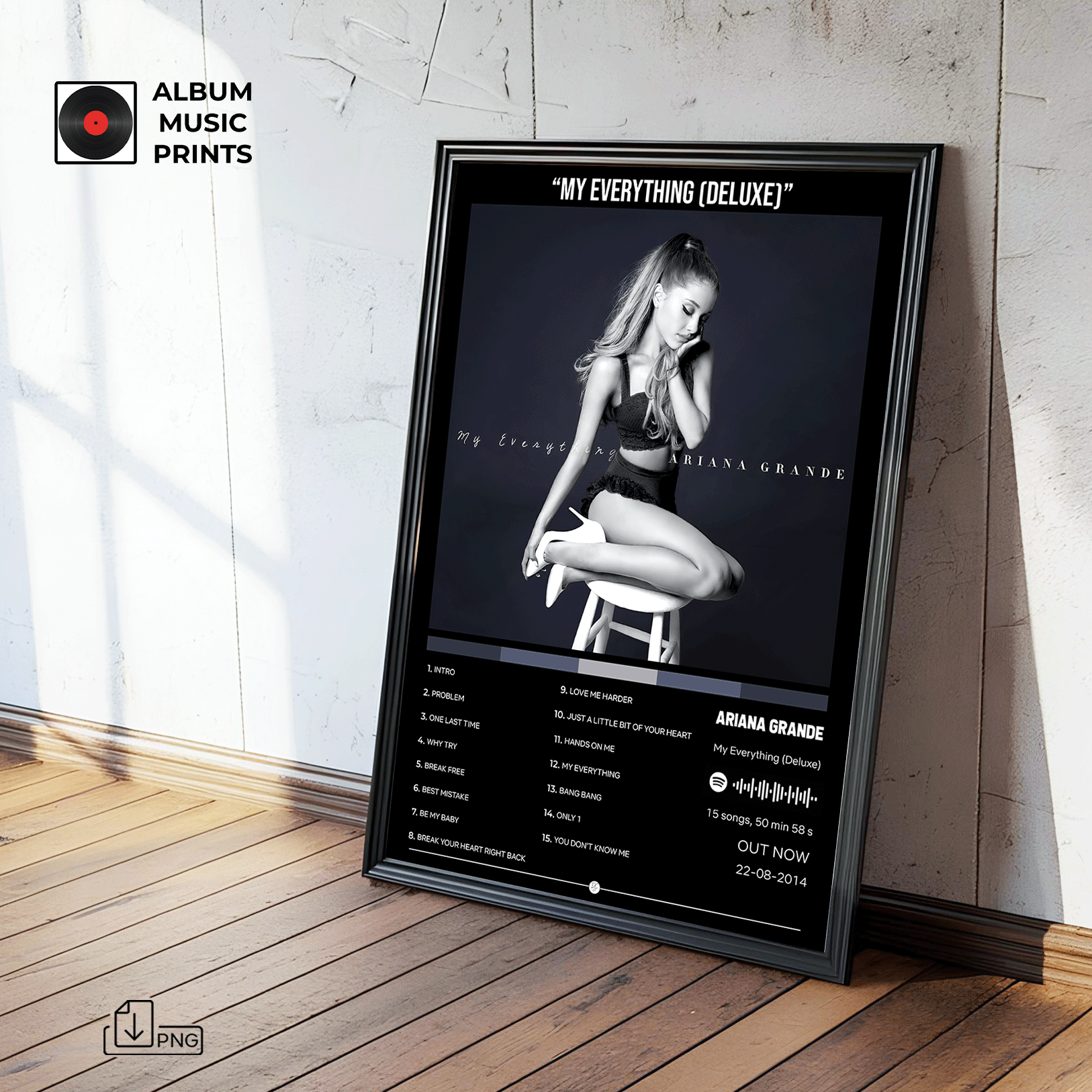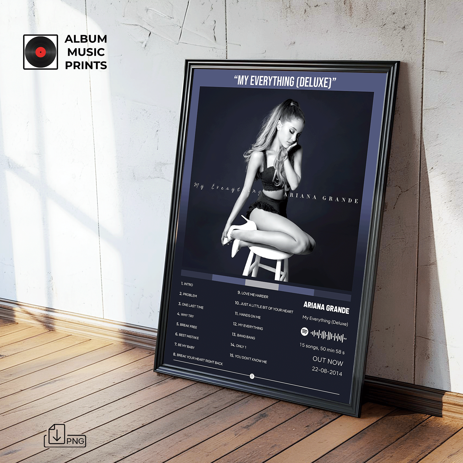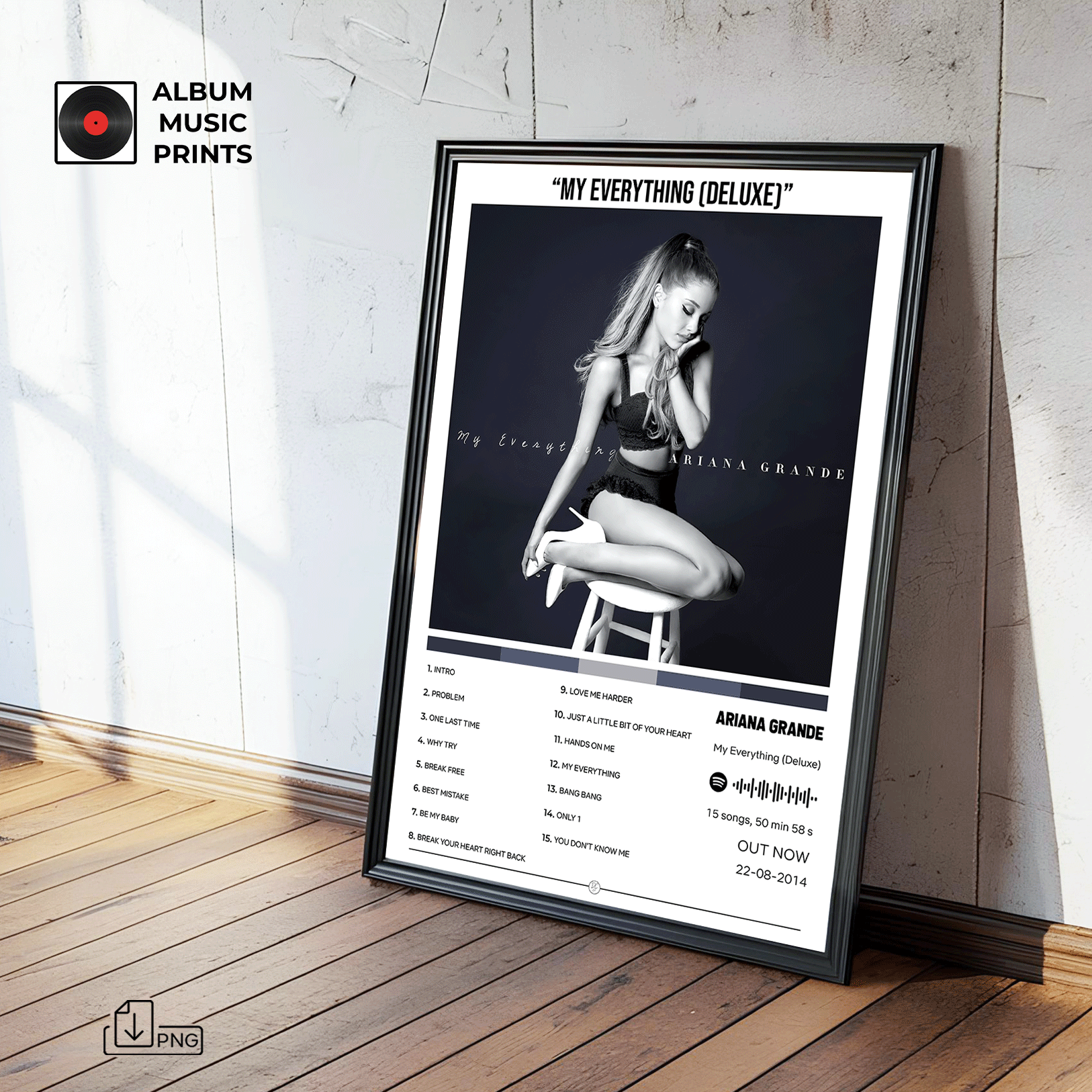 Descarga instantánea del póster digital del álbum My Everything (Deluxe) de Ariana Grande. Diseño exclusivo de alta calidad, perfecto para decorar tu espacio con el arte visual de uno de los álbumes más icónicos de la música pop contemporánea.