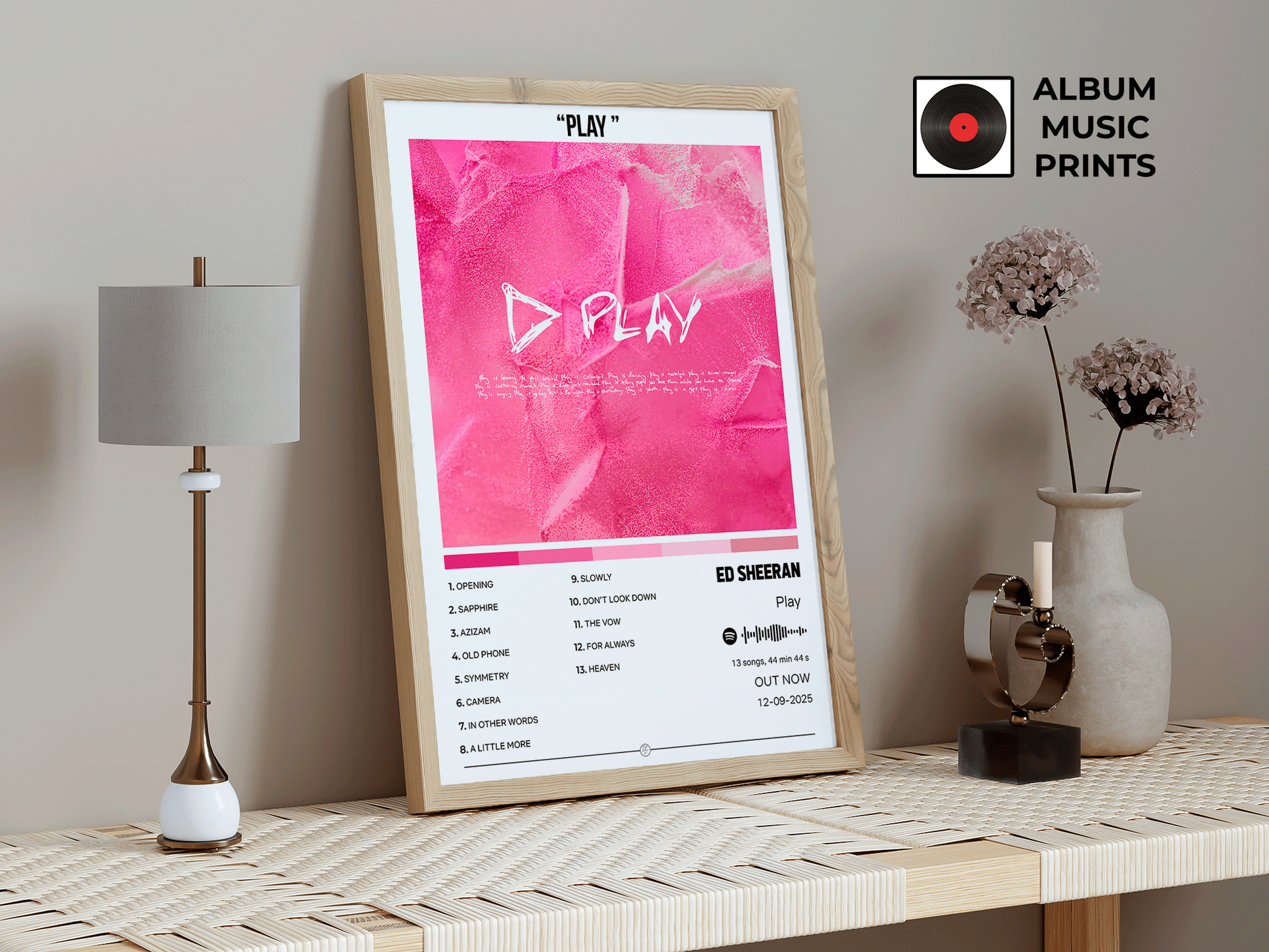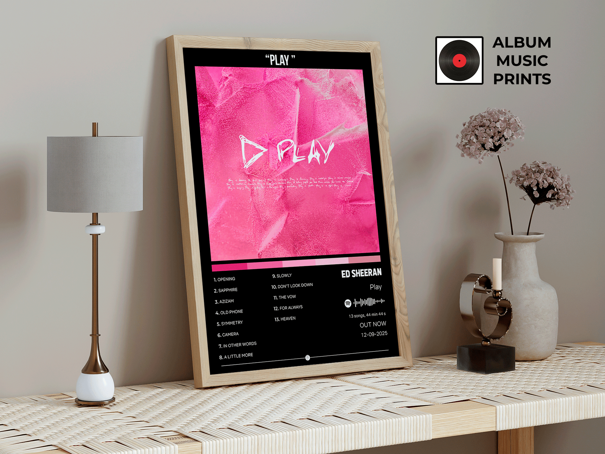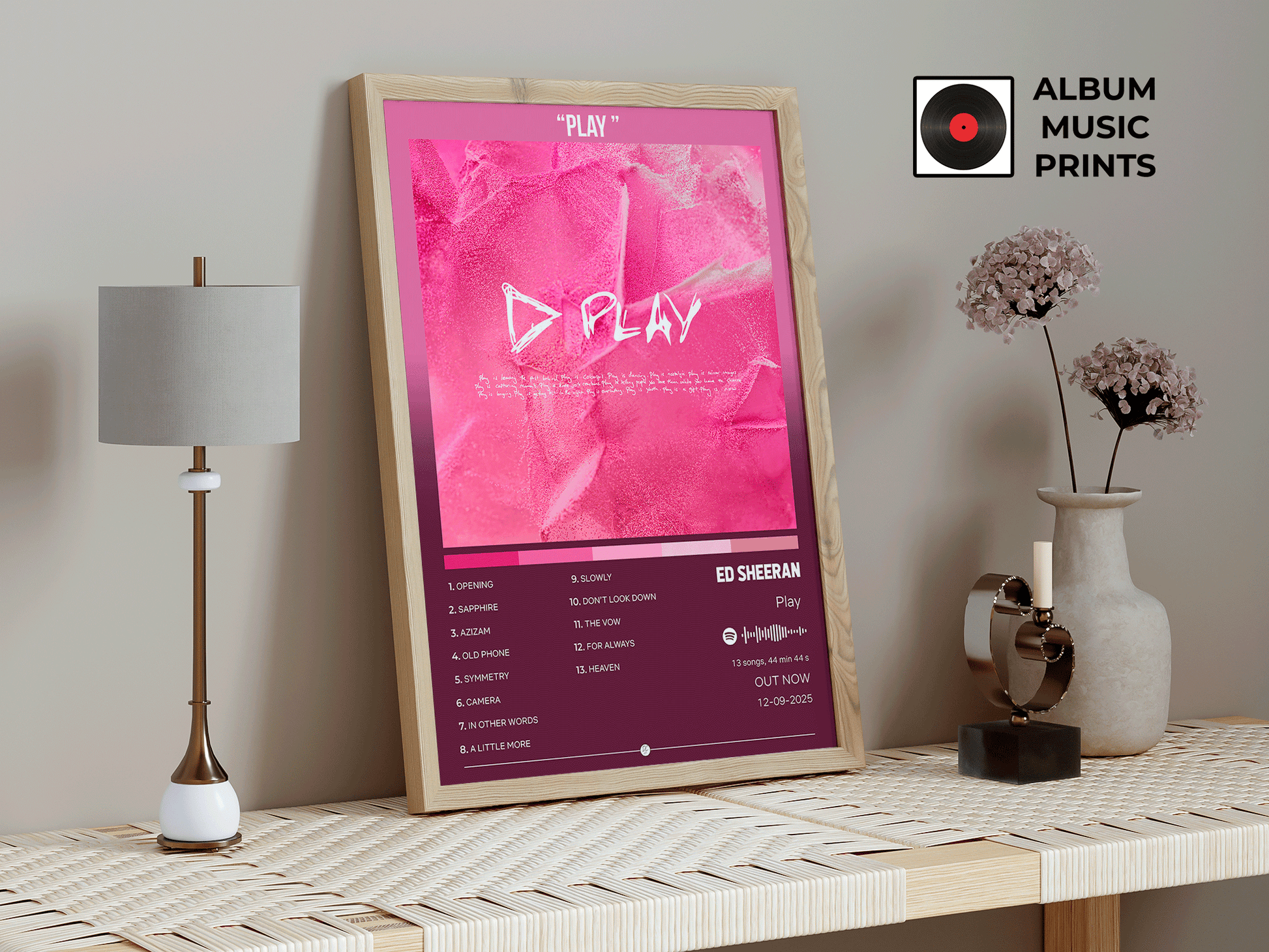 Descarga tu póster digital del álbum PLAY de Ed Sheeran y transforma tu espacio con arte musical de calidad premium.