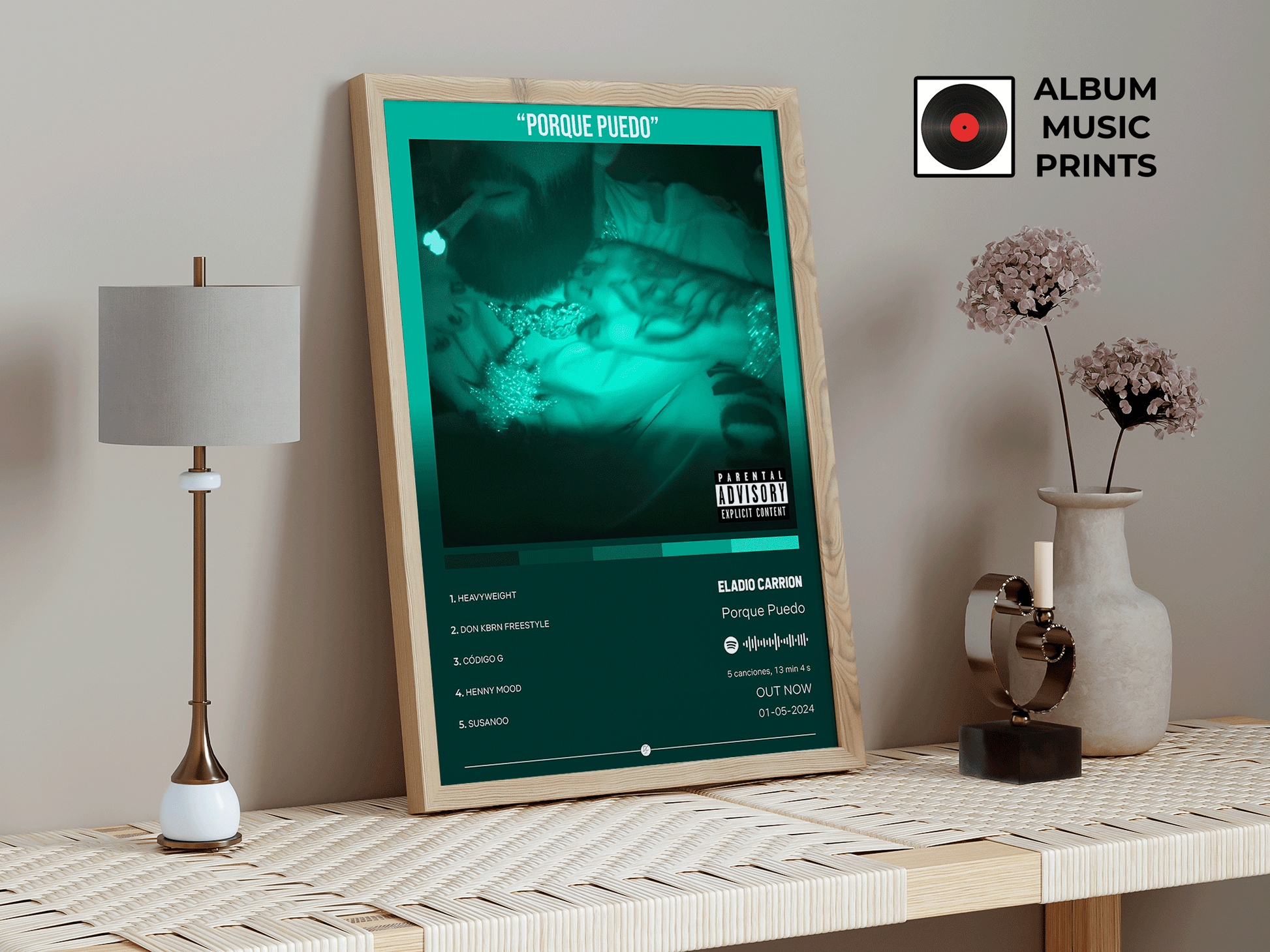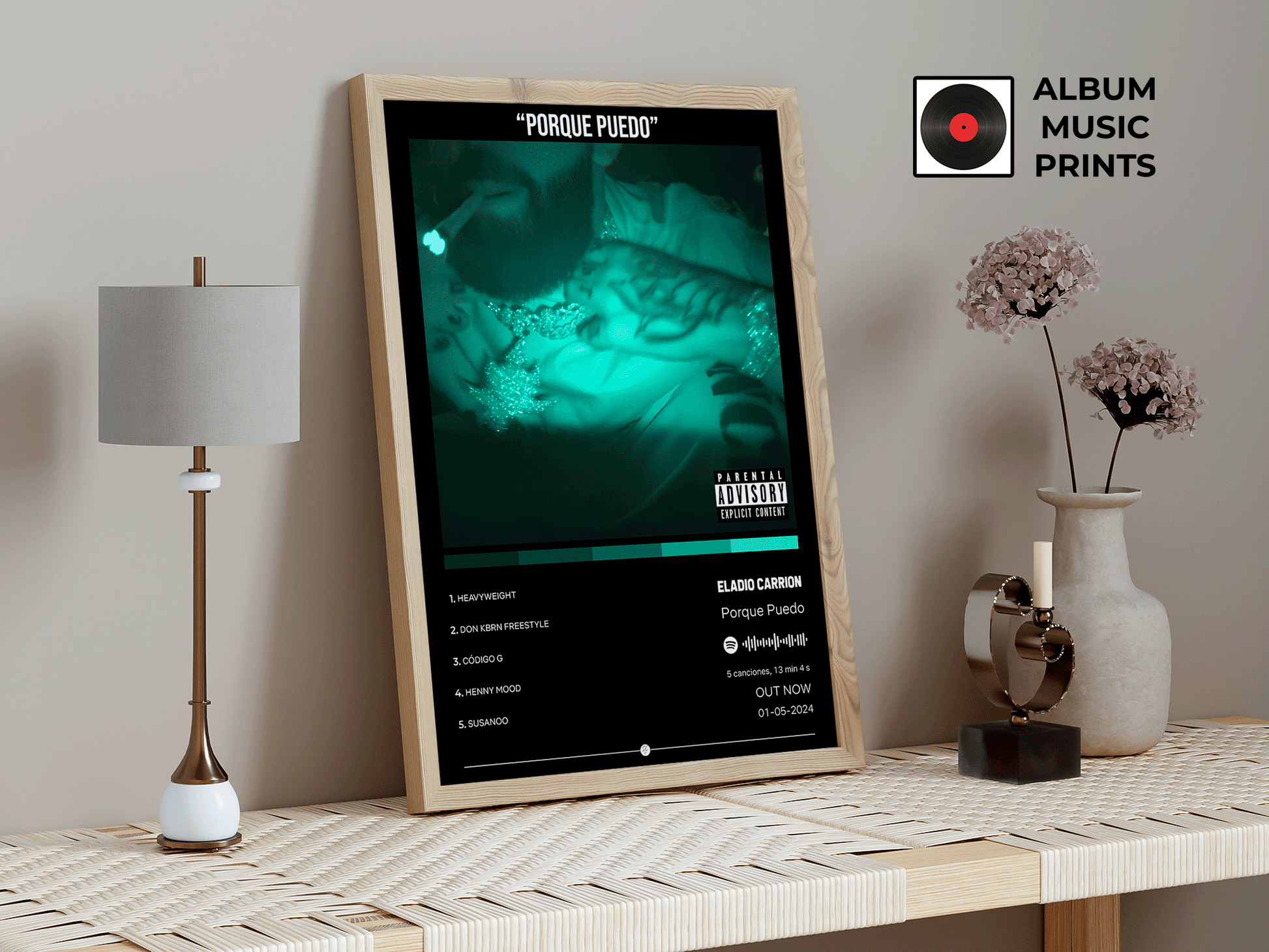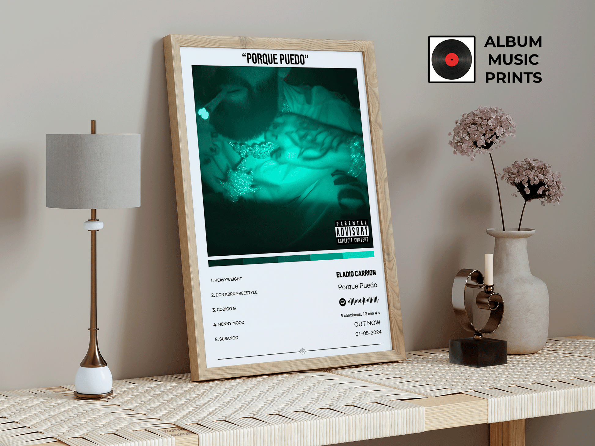 Descarga instantánea de arte digital de alta calidad del álbum PORQUE PUEDO de Eladio Carrión. Perfecto para fans, coleccionistas y decoradores que buscan capturar la actitud única y el estilo inconfundible de uno de los artistas más influyentes del trap latino contemporáneo.