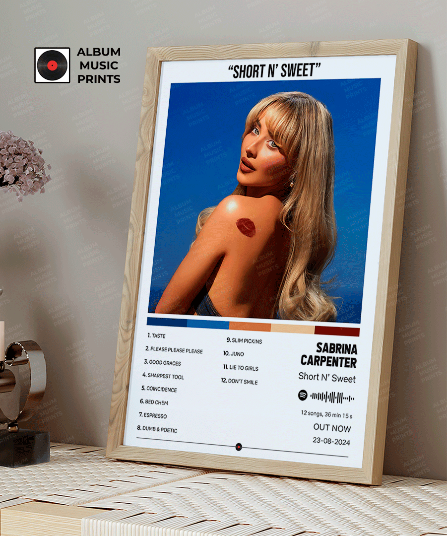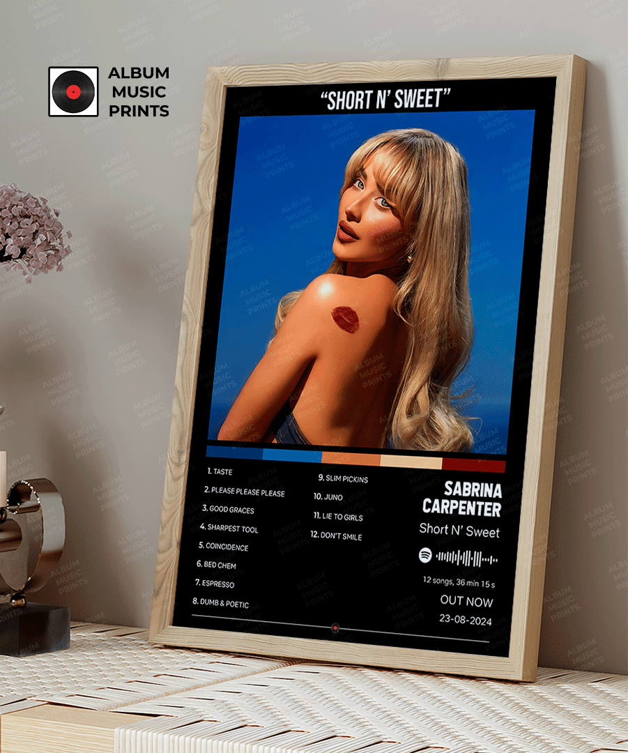 Culturally, Short N' Sweet represents a moment in pop music where authenticity meets trend-setting energy. Its vibrant sound and dynamic visuals helped define a new era of young pop icons, inspiring creativity, confidence, and connection. Displaying this poster is a way to celebrate the spirit of the album and the artist behind it.
