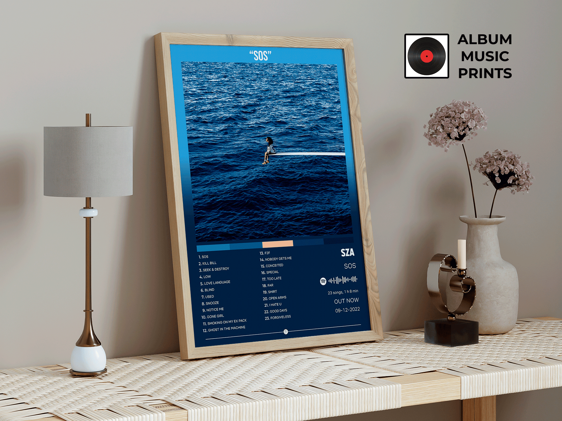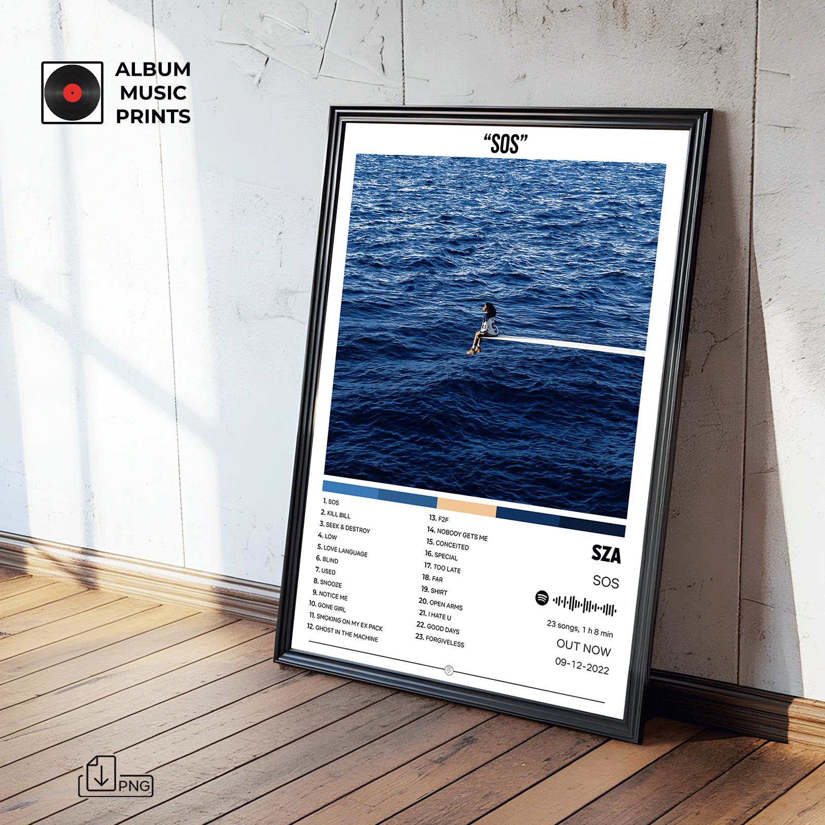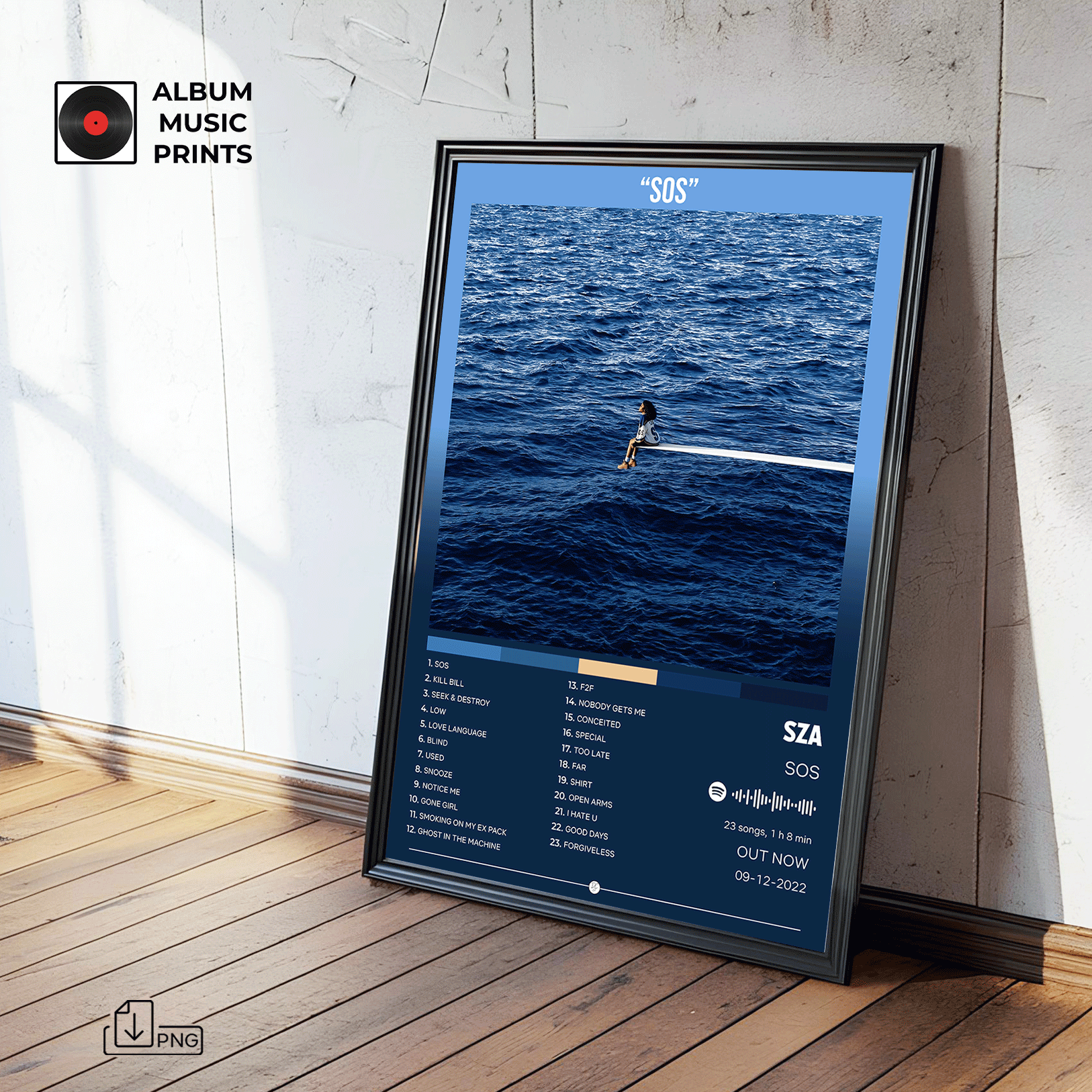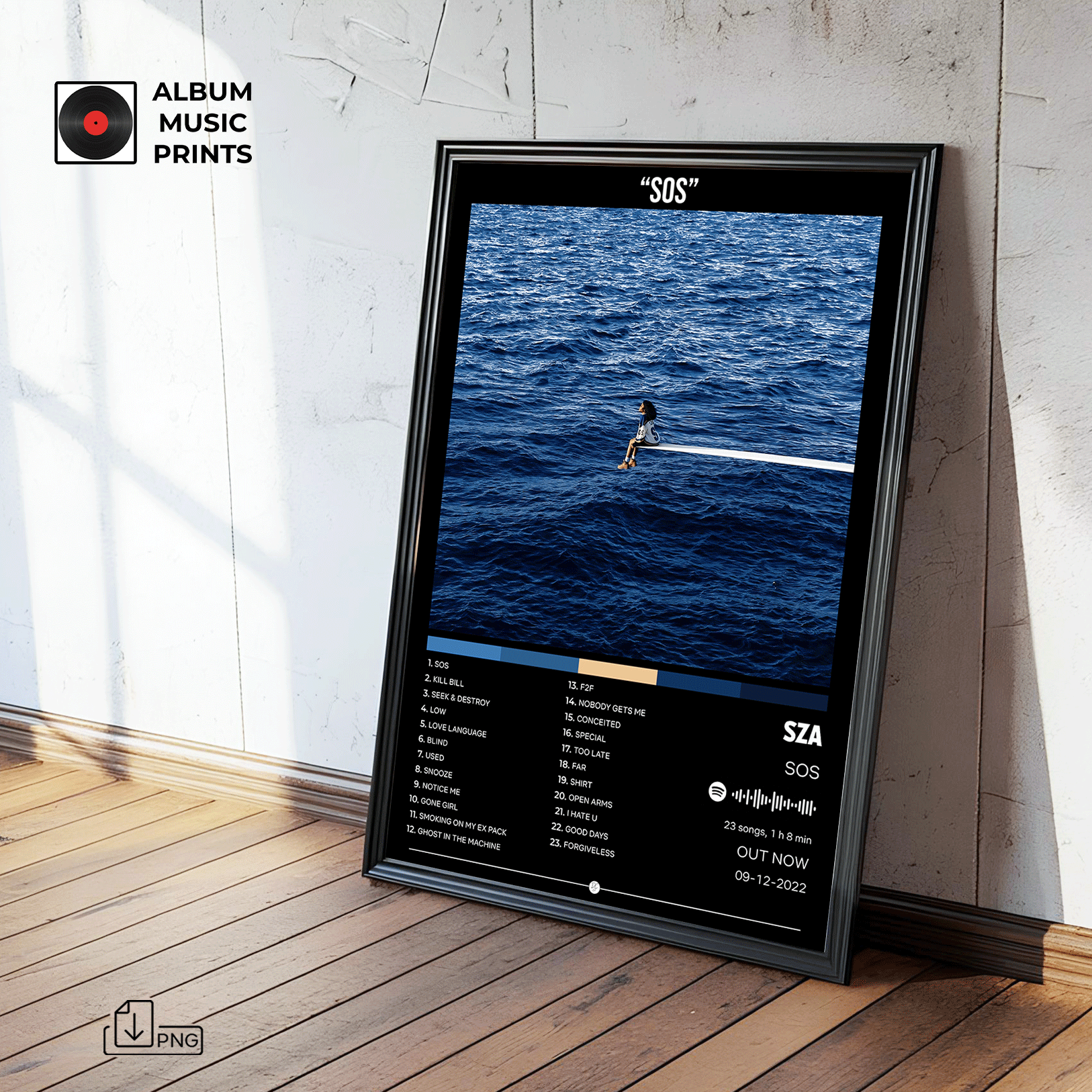 Descarga instantánea del póster digital del álbum SOS de SZA. Arte musical premium de alta calidad, perfecto para decorar tu espacio con el estilo único de esta icónica artista de R&B y soul contemporáneo.