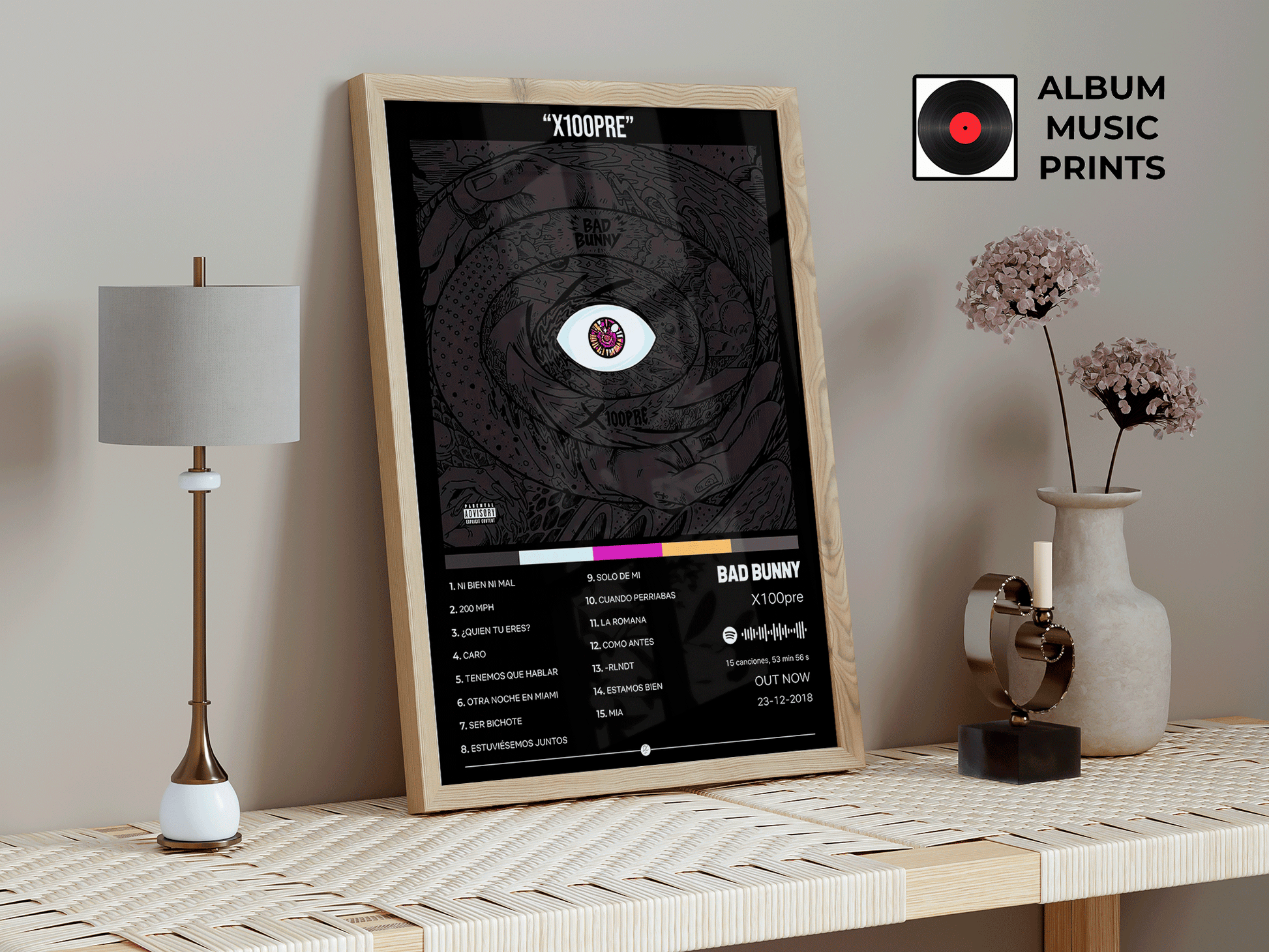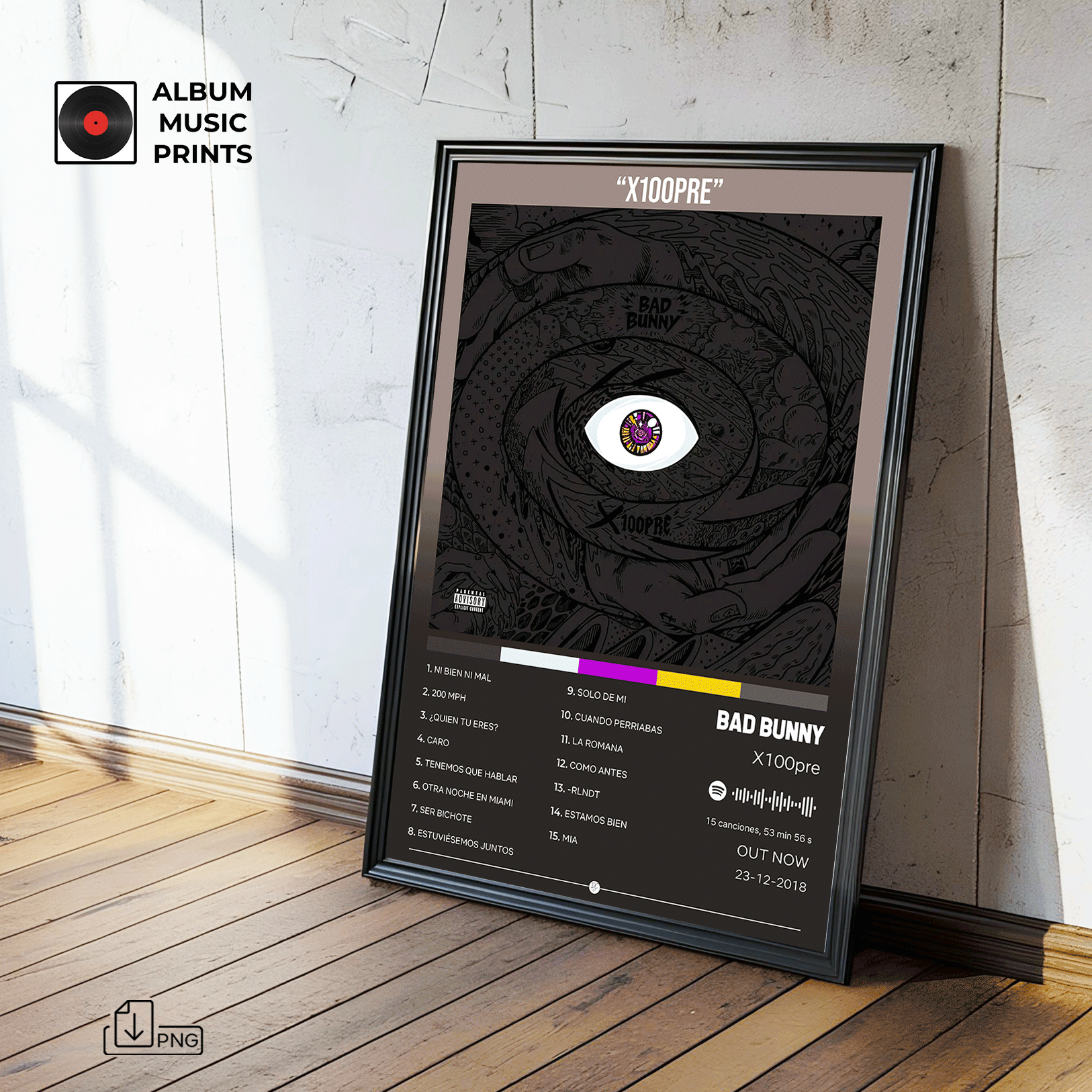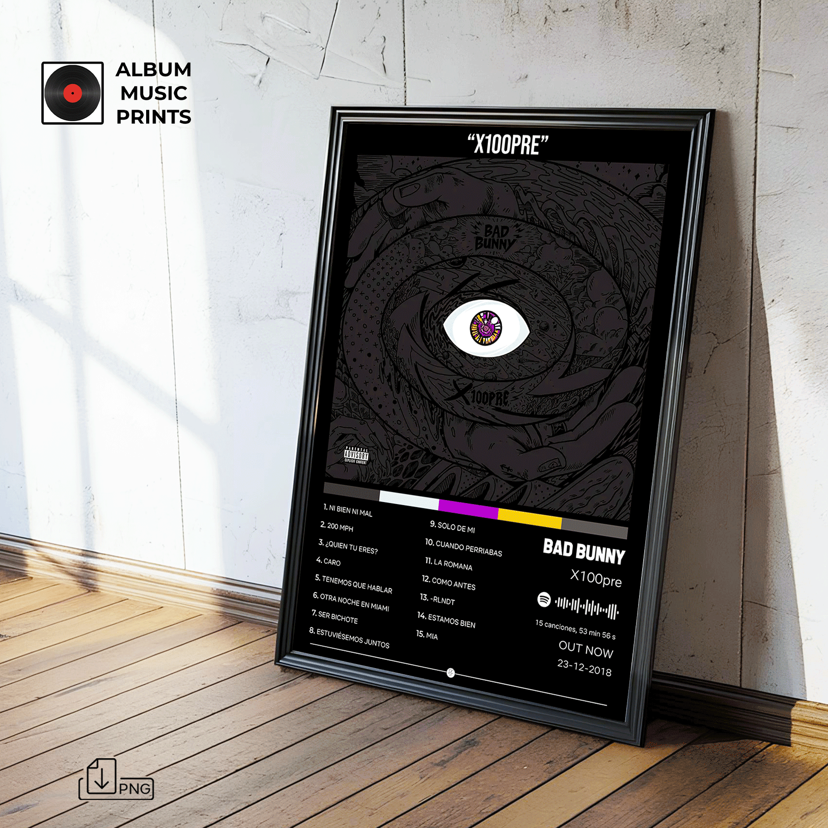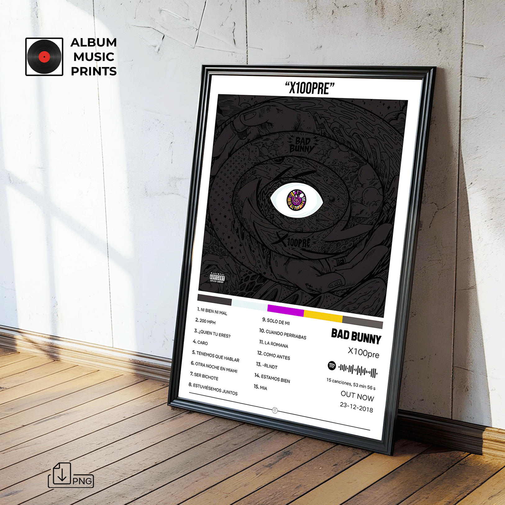 Descarga instantánea del poster del álbum X100PRE de Bad Bunny. Celebra el álbum debut del conejo malo con este poster digital de alta calidad, perfecto para decorar tu espacio.