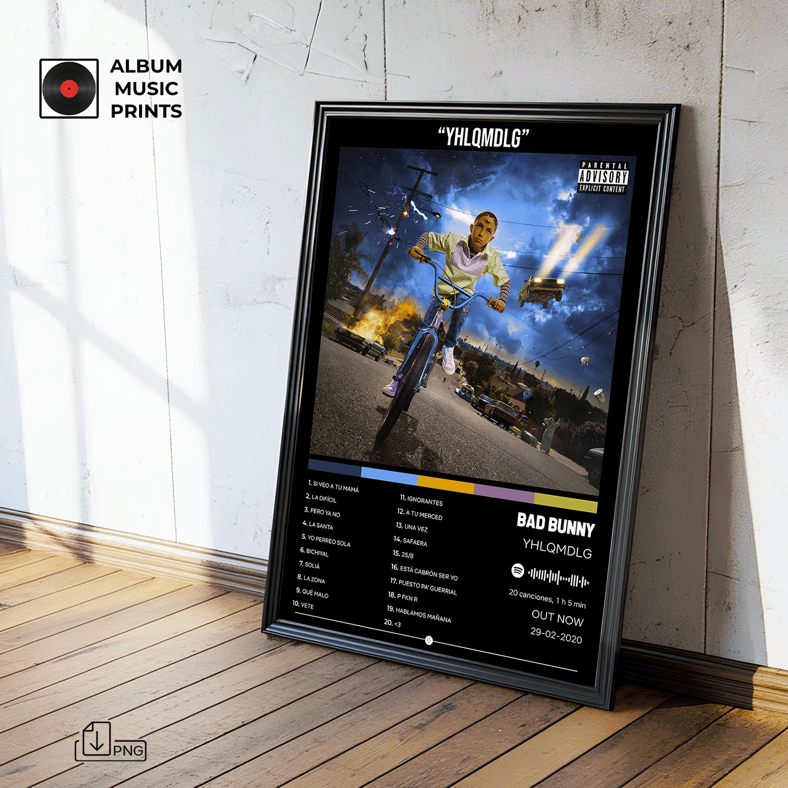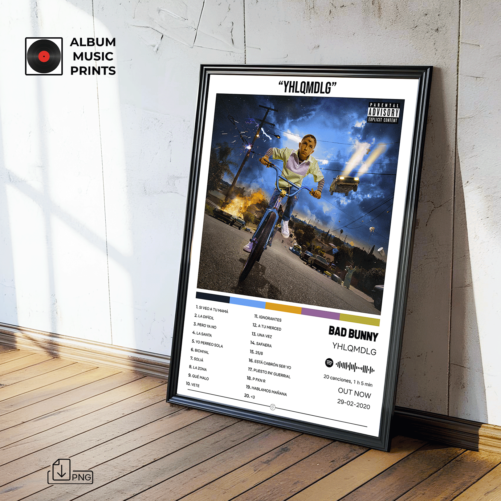 Descarga instantánea del poster del álbum YHLQMDLG (Yo Hago Lo Que Me Da La Gana) de Bad Bunny. Lleva el arte de este álbum revolucionario del conejo malo a tu espacio con este poster digital de alta calidad.