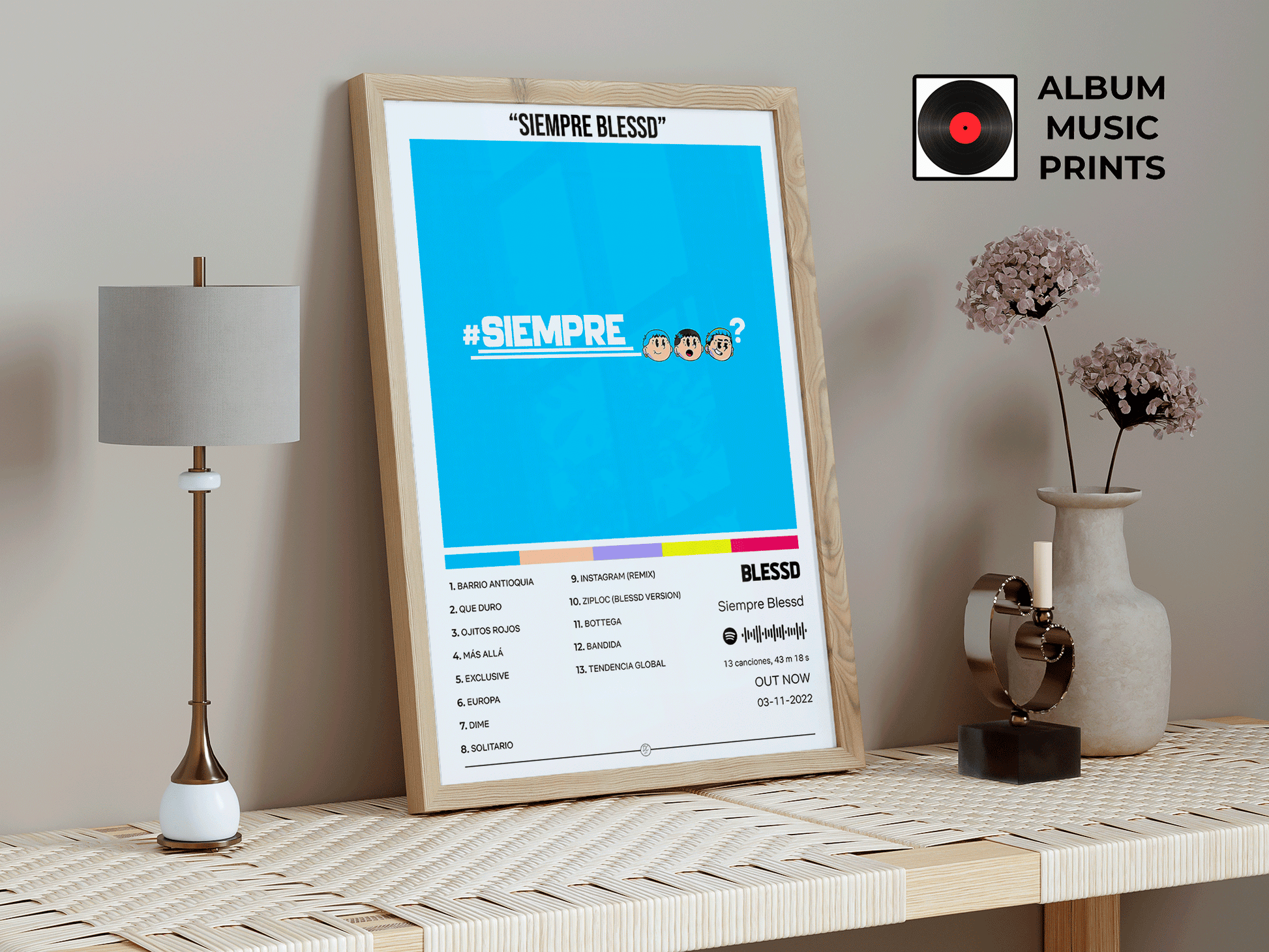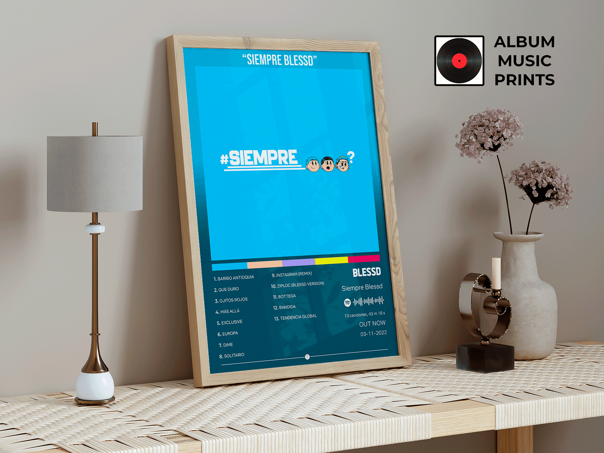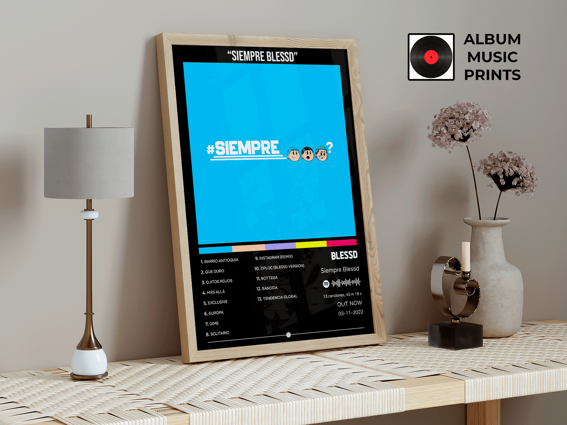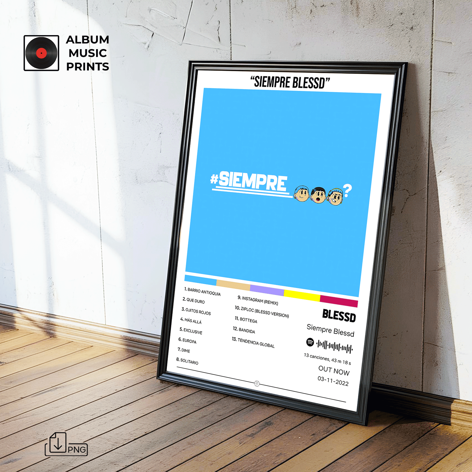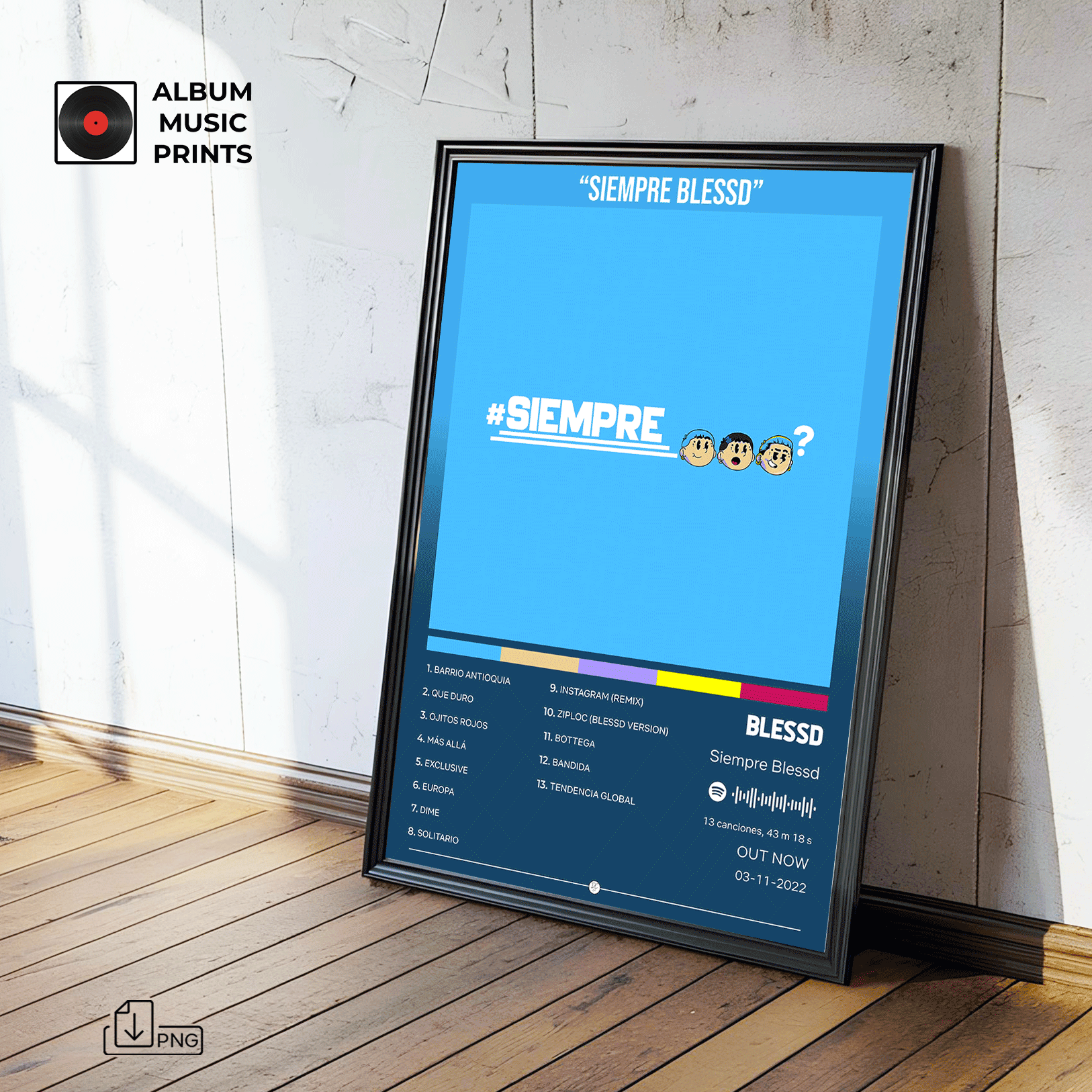 Transforma tu espacio con este exclusivo poster digital del álbum Siempre Blessd de Blessd. Perfecto para fanáticos del reggaetón urbano, coleccionistas de arte musical y amantes de la música latina contemporánea.